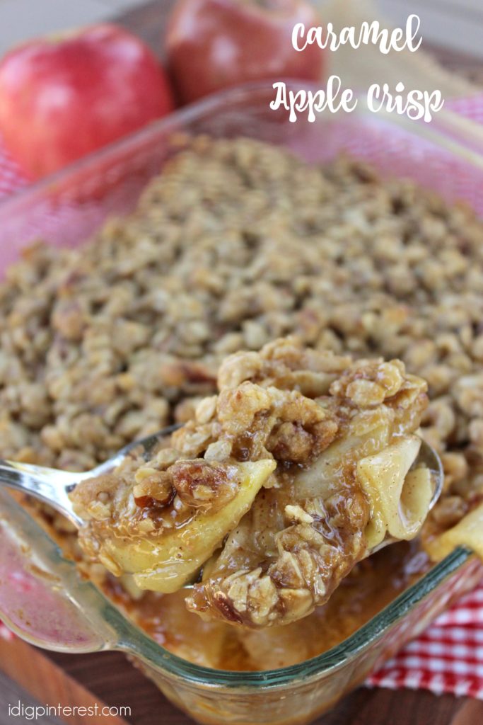 Maybe even more than apple pie, I love apple crisp. It’s much easier to make and that crunchy cinnamon, oatmeal and nut topping just can’t be beat! Throw in a layer of caramel and I’m pretty sure I’ve died and gone to heaven!