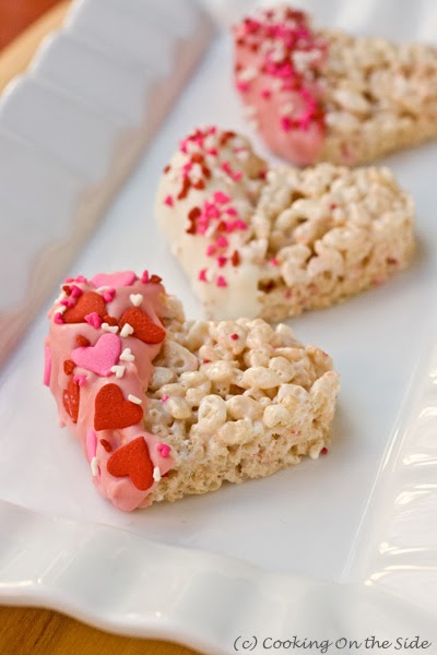 Heart-Shaped Dipped Rice Krisipies Treats from Cooking on the Side