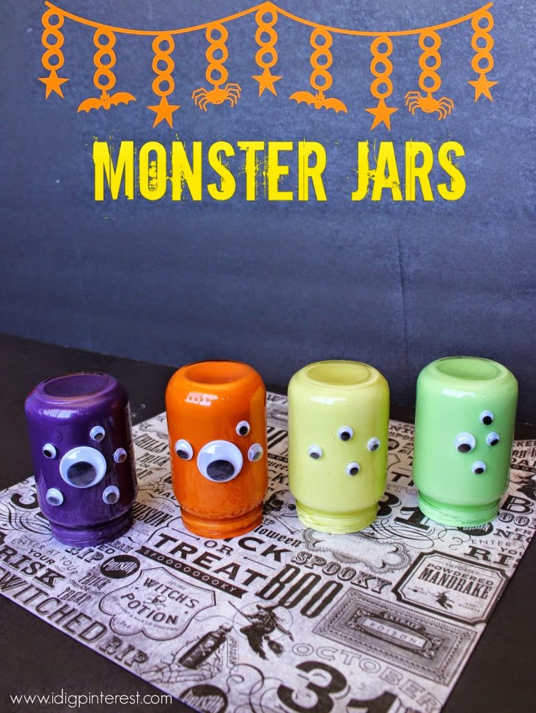 Googly Eye Monster Jars Halloween Craft