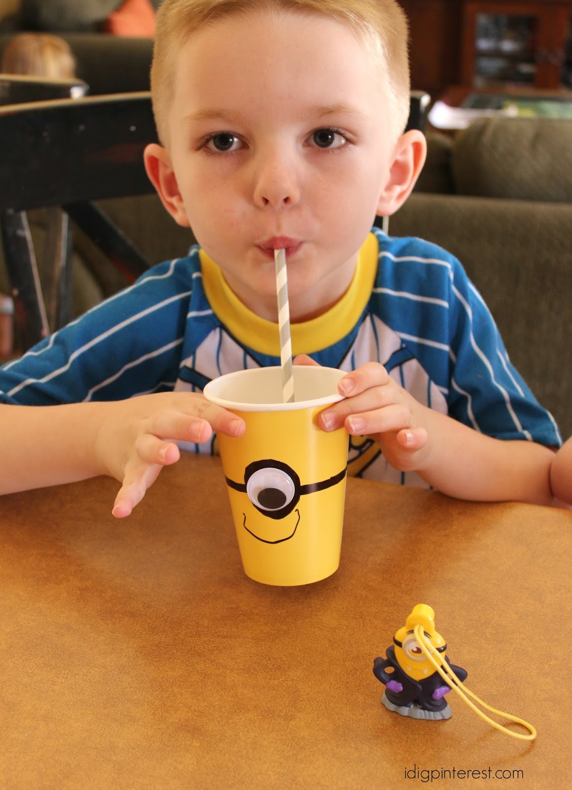 We made some sweet little Minion Paper Cups for our breakfast drinks. They are SO easy to throw together and the kids carried them around the house for a while afterwards because they were too fun to put down.