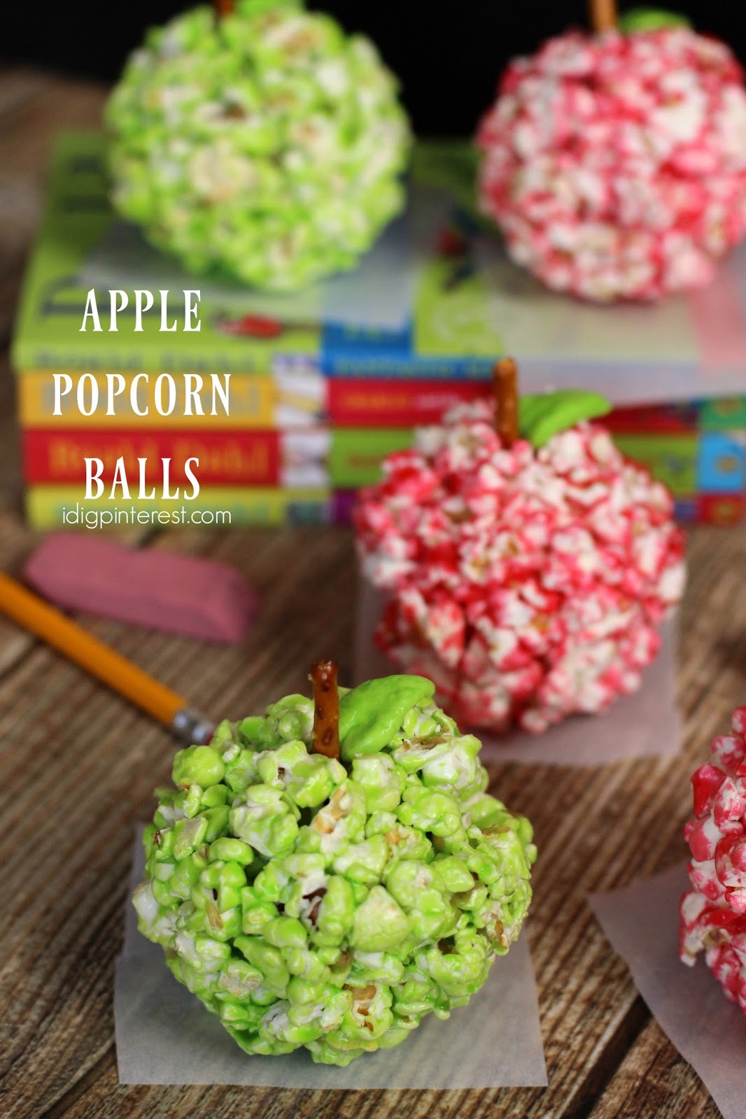 Nothing says it’s back-to-school time like a melted candy-coated popcorn ball that resembles a gorgeous green or red apple!