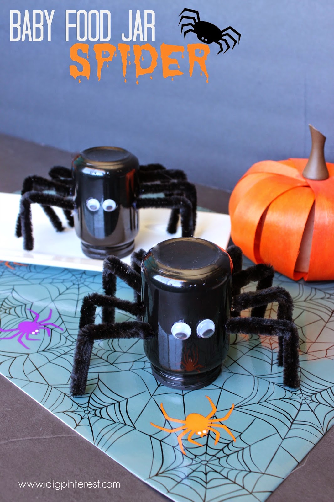 This Baby Food Jar Pipe Cleaner Spider is a super simple and inexpensive craft that the kids can help with too!  It also doubles as a fun Halloween decoration!
