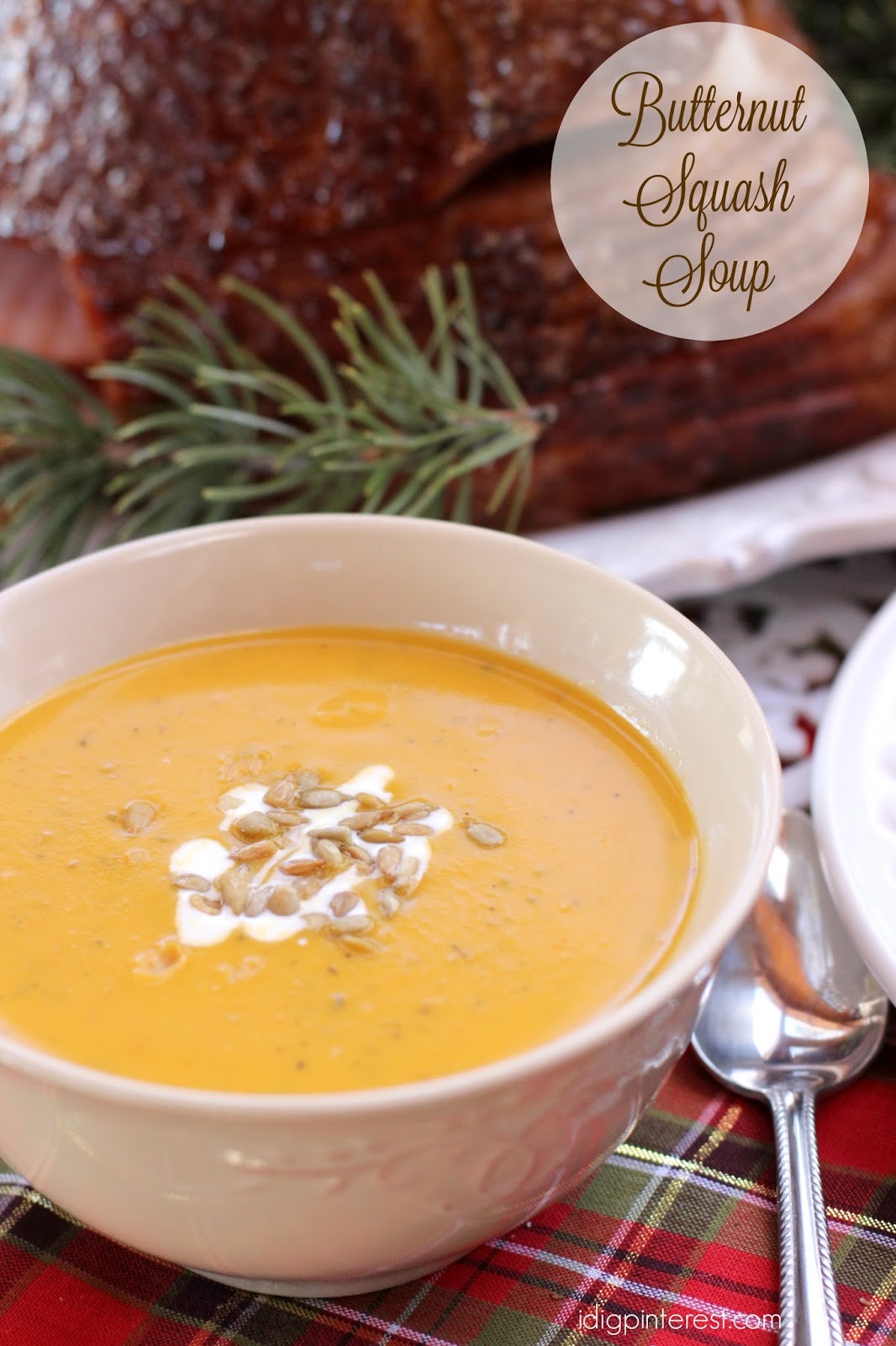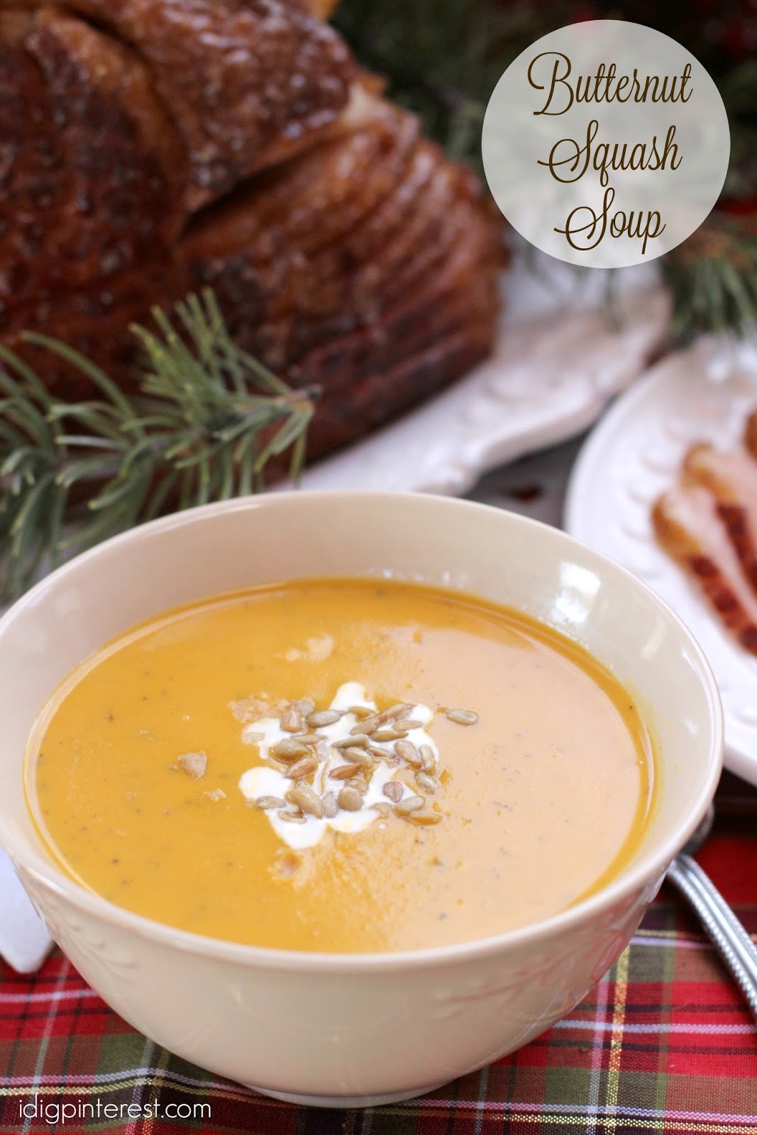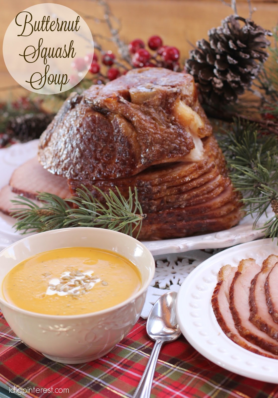 A fancy-looking but easy-to prepare dinner fit for guests, this baked ham and Roasted Butternut Squash Soup meal will warm you right through! Enjoy great conversation around the table over this yummy, comforting food.