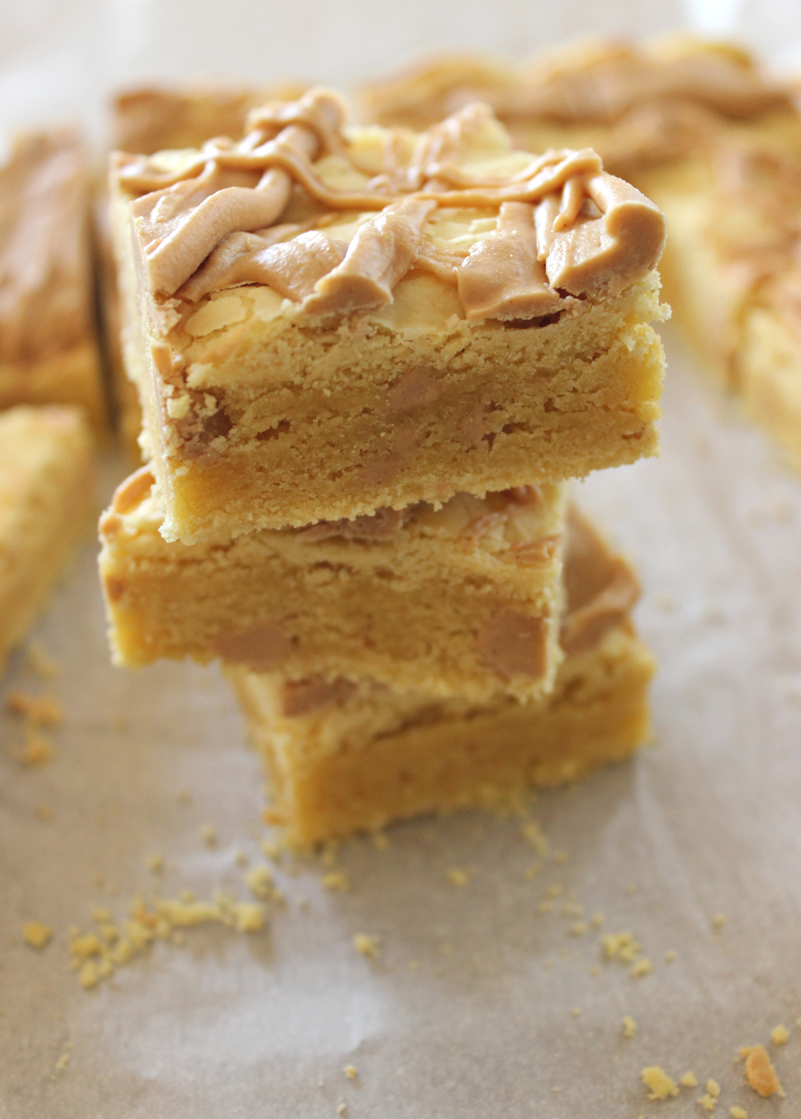 These are absolute peanut butter cookie bar perfection! Every bite is pure bliss! These disappear in a hurry! I hope you enjoy!