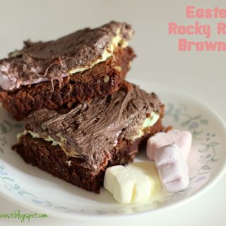 4. Let them cool on a cooling rack. Melt 1/2 c. Reese's Peanut Butter Chips in the microwave (in short increments, stirring between, so it doesn't burn) and drizzle over the top of the cooled bars. Let the melted peanut butter chips set up, then slice and enjoy!