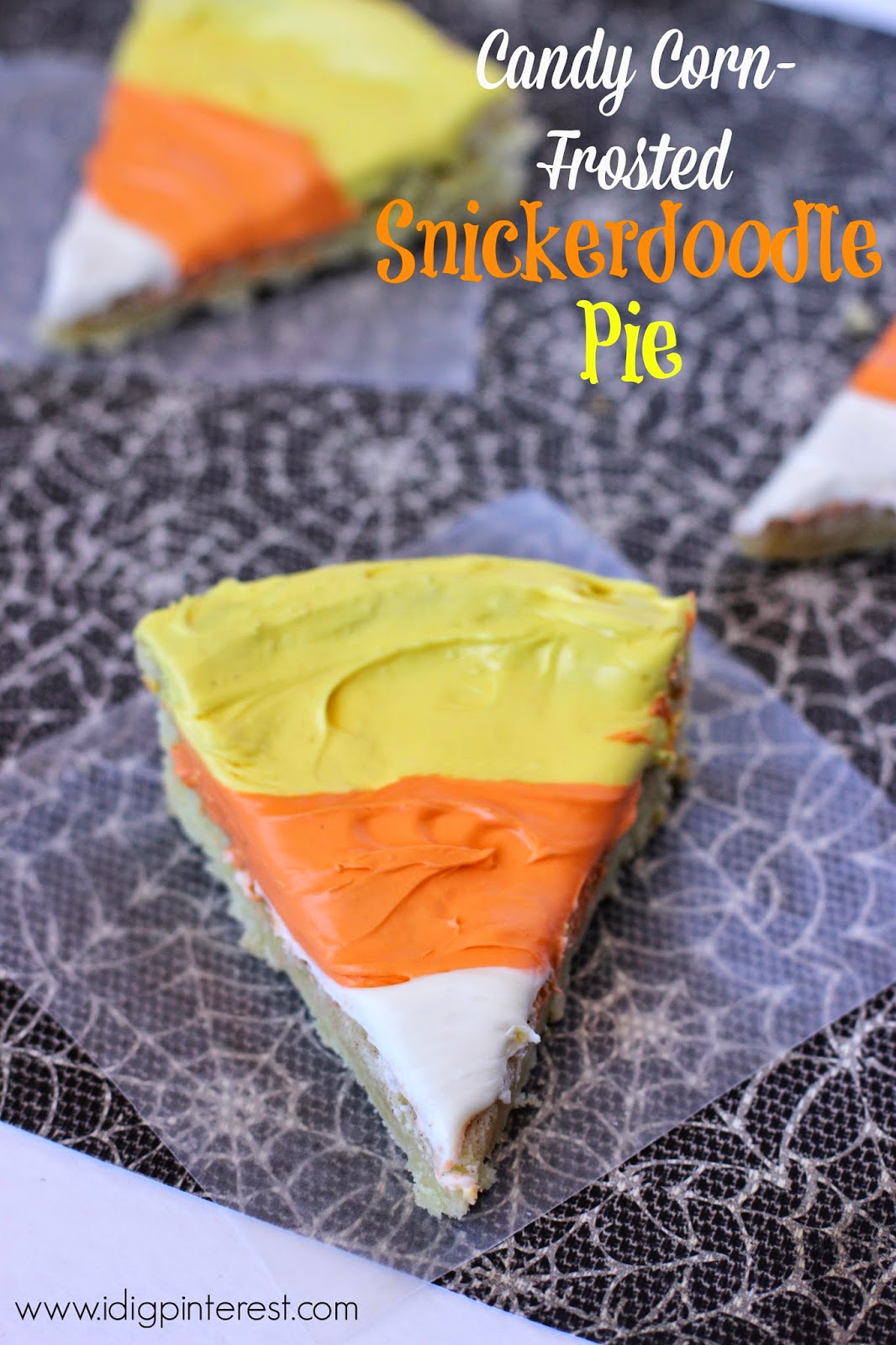 {CANDY CORN-FROSTED SNICKERDOODLE PIE}