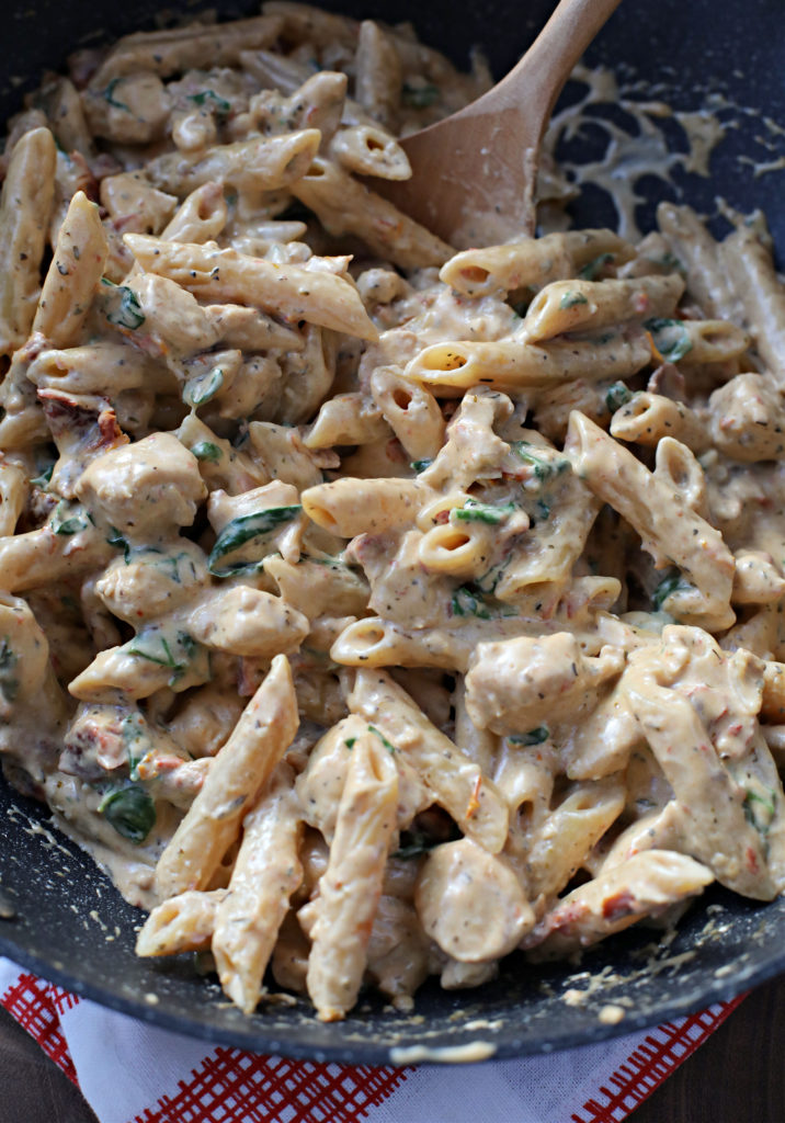 The sun-dried tomatoes combined with penne, diced chicken, cream cheese, heavy cream and parmesan cheese come together to create a phenomenal experience for the taste buds! My family couldn’t get enough of this!