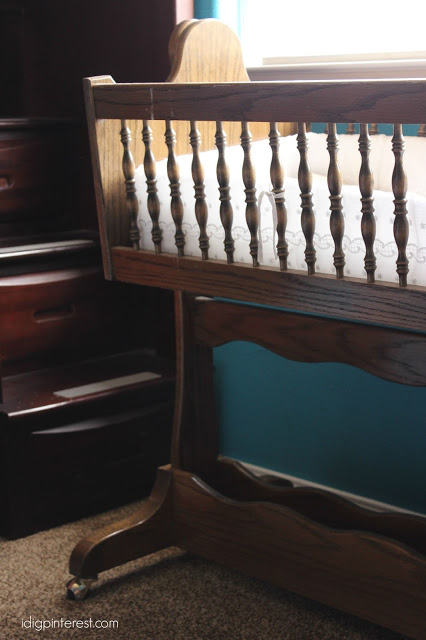 Here’s another quick peek at what will be in our baby’s room. I can’t wait to lay my sweet baby in this beautiful cradle! I’ve used it with all my kids and it holds a special place in my heart because my husband slept in it as an infant. Talk about nostalgia!