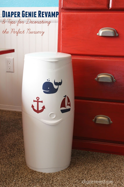For instance, as much as I love all that my new Diaper Genie entails, it was in need of a little nautical TLC. 🙂