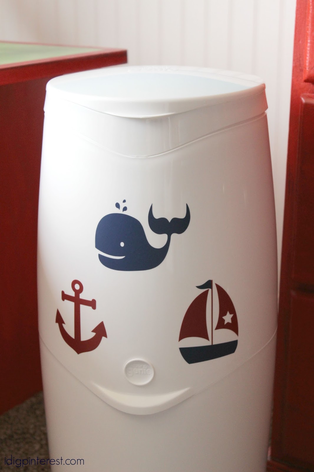 For instance, as much as I love all that my new Diaper Genie entails, it was in need of a little nautical TLC. 🙂
