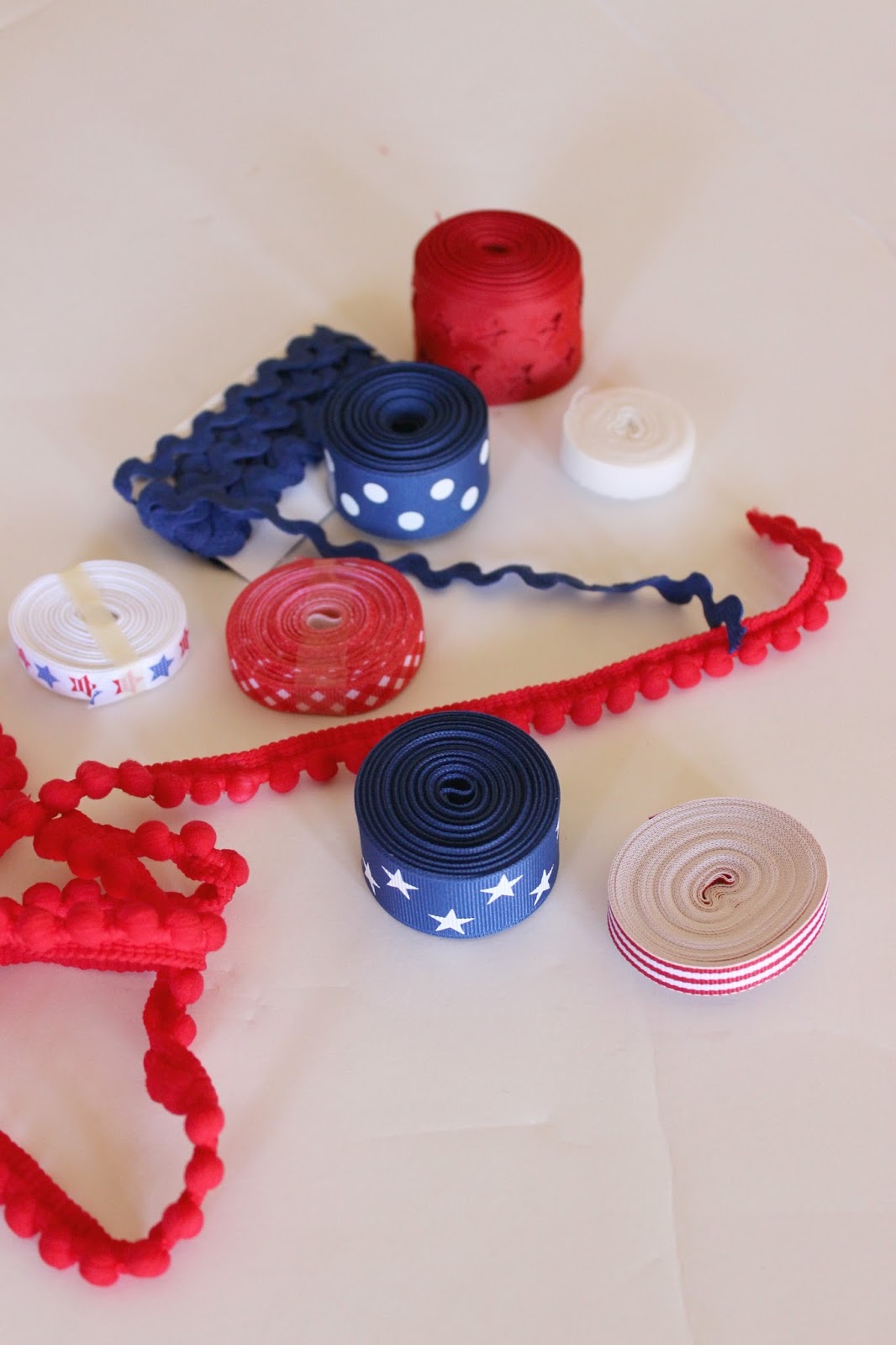 I layered some blue ric rac down the center of the star cutout ribbon for variety and added cuteness.