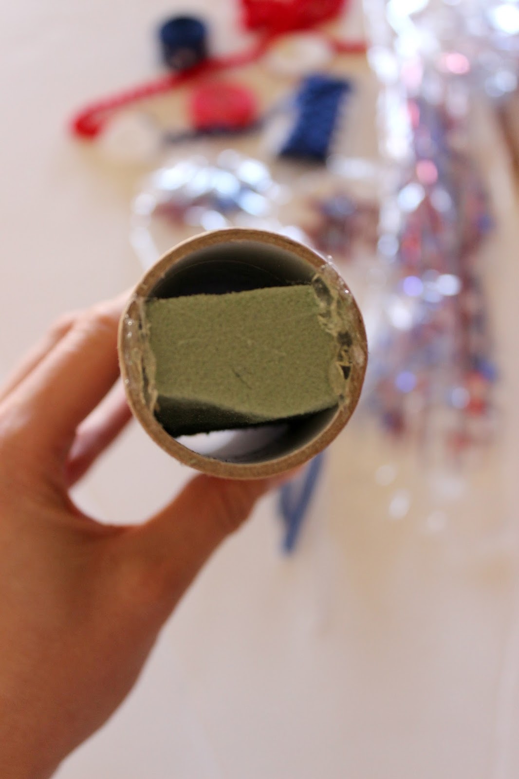Start by cutting your craft foam so it fits snuggly inside the top portion of the tube. This is to hold your pics in place, so it just needs to be long enough to support them.