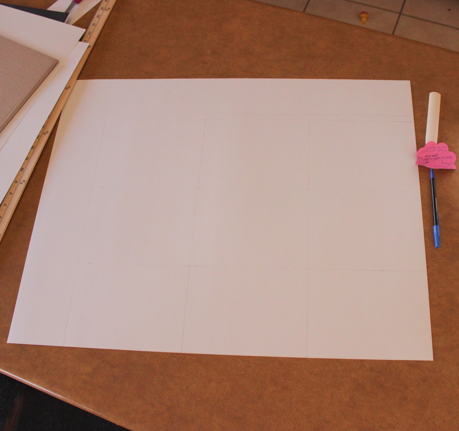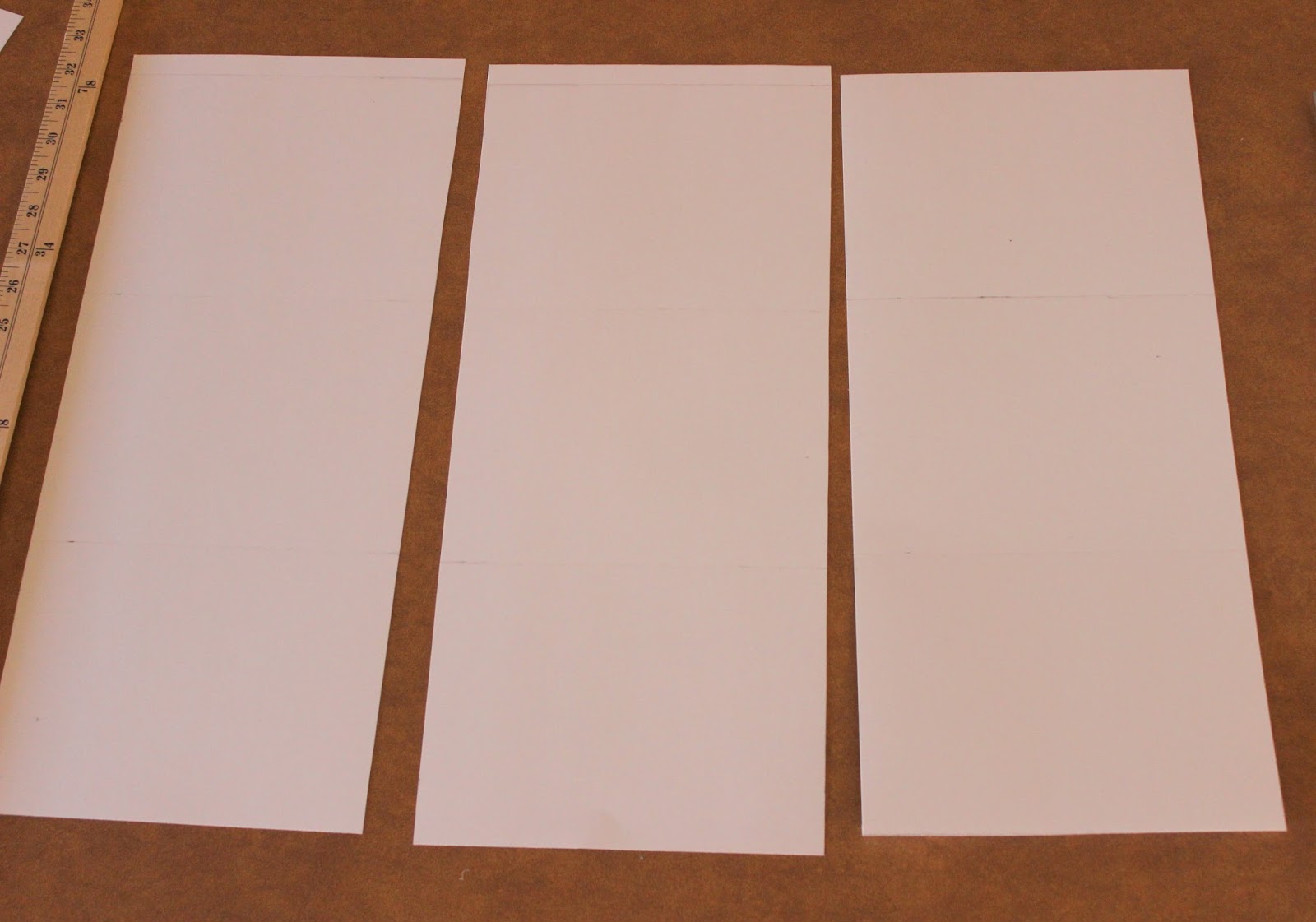 Grab your posterboard and draw 3 columns that are 8″ wide and 18 1/2″ long. Then measure in 1/2″ and draw a line (this line should span for 24″, without the excess). This will be the 1/2″ tab that you will use to attach the pieces together.