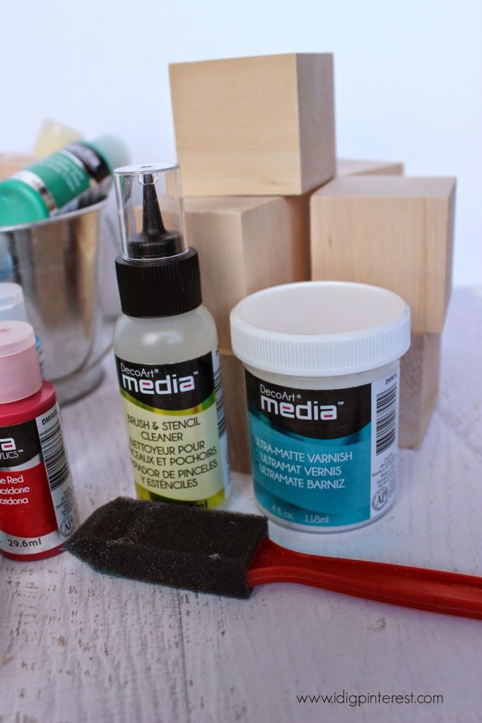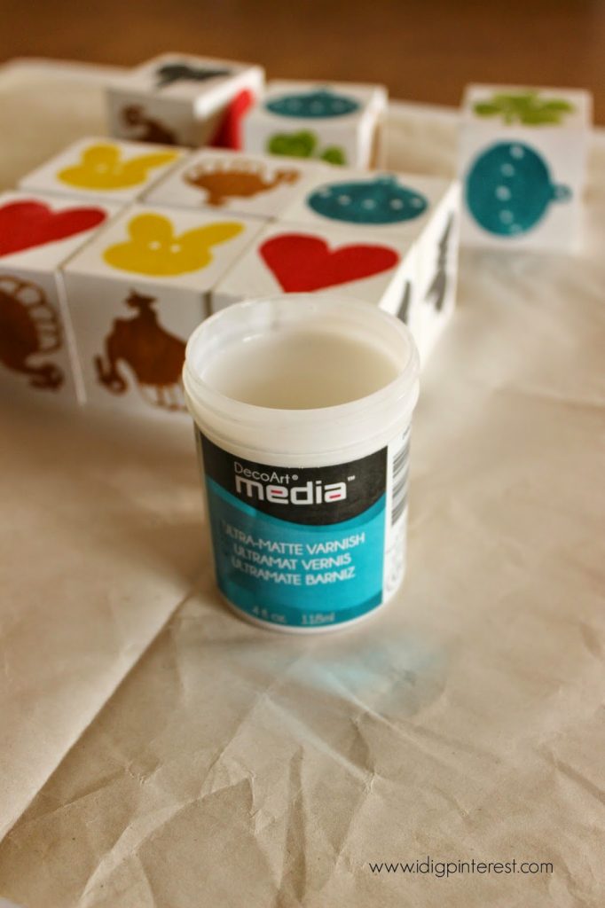 I used the Ultra-Matte Varnish to give the blocks a protecting finish after I painted them. It’s clear and doesn’t change the look in any way, which is what I was going for.