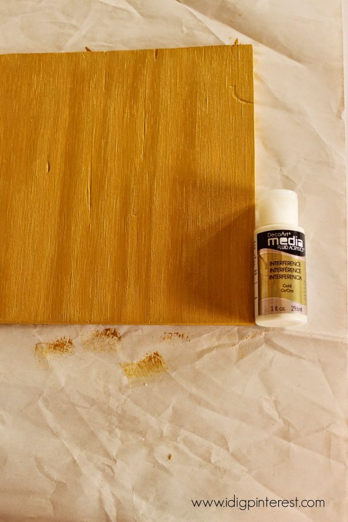Paint the square. I used a yellow color for the base and then painted over it with an Interference Media in Gold. If you angle it certain ways in different lights, you can see a pretty sheen/glimmer.