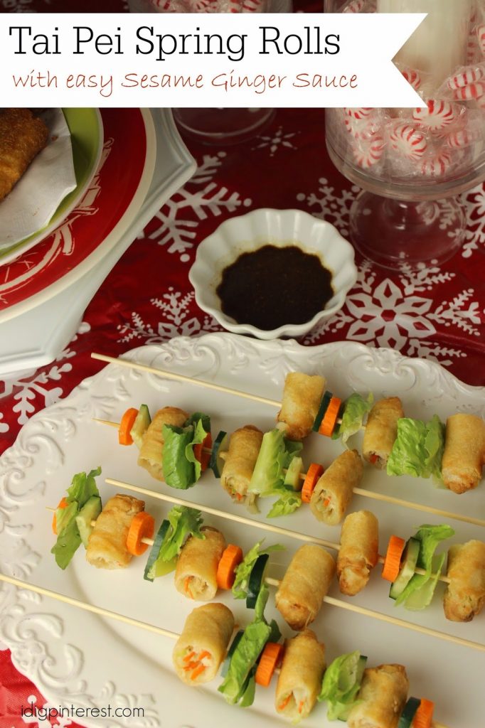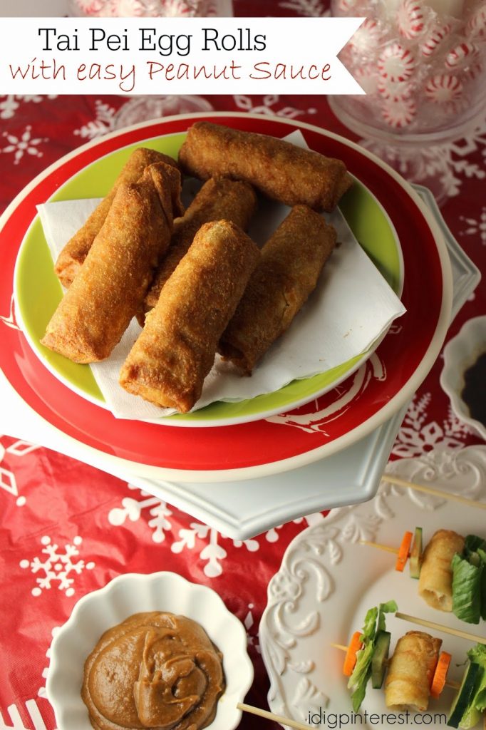Entertaining during the holidays can be so easy and yummy with today’s restaurant-inspired recipe ideas including warm-up Tai Pei Egg and Spring Rolls served with homemade Peanut and Sesame Ginger Sauces. These are sure to be a hit with the guests!