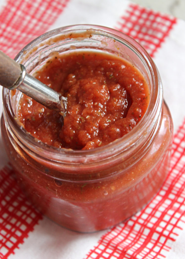 This is as good as my favorite brand of pizza sauce from the jar, probably even better. If you ever want to make pizza and realize you don’t have sauce in your cupboard, don’t let that deter you! Making pizza sauce could seriously not be any easier!