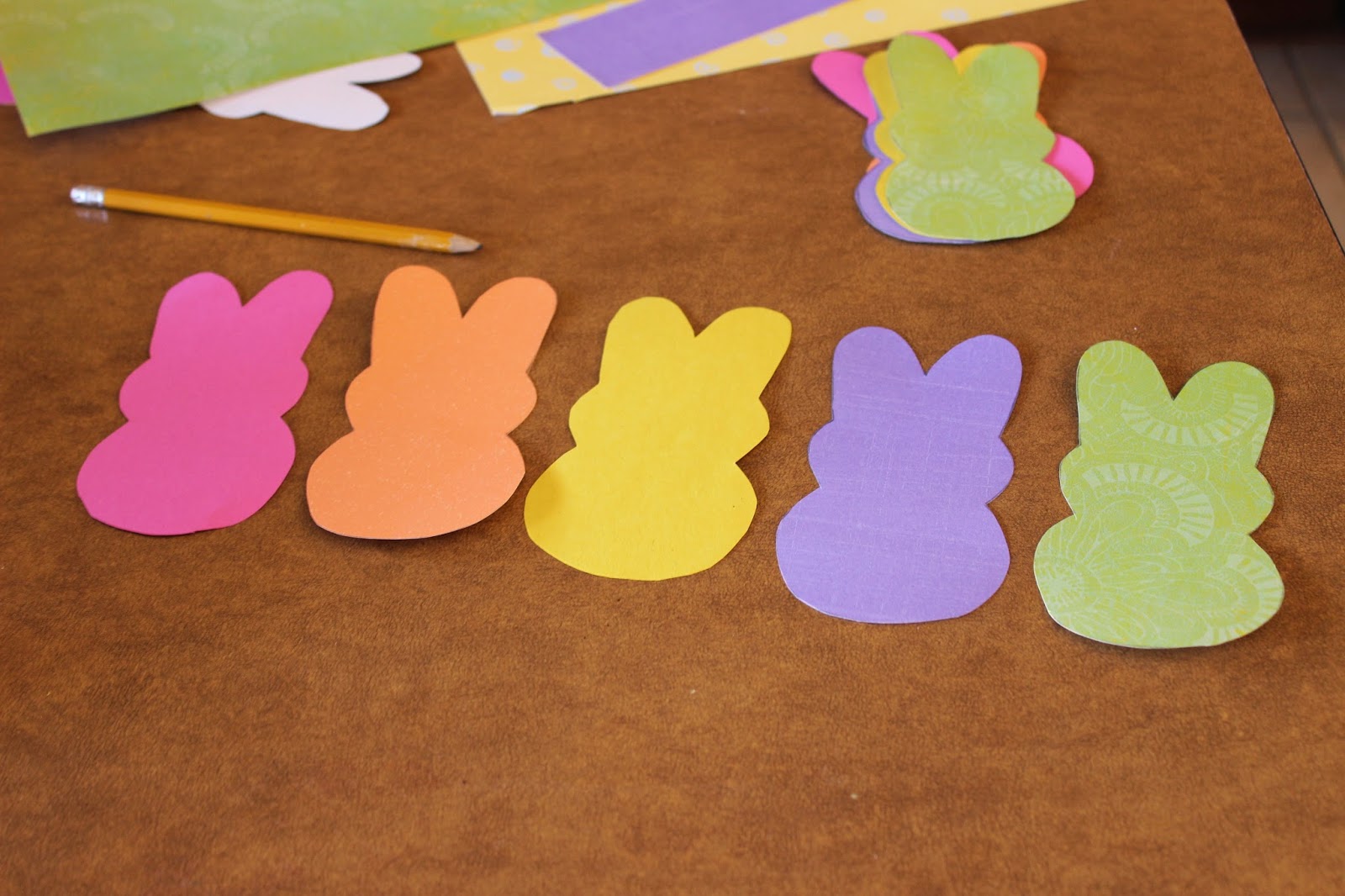 Start by downloading THIS pattern, then tracing and cutting out your bunnies. I ended up cutting ten and split them into two banners. Use whatever colors you’d like.