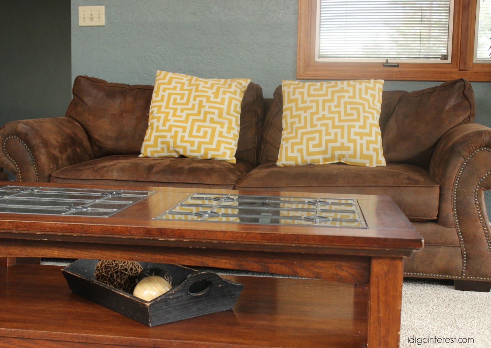 1. Paint. It’s amazing what a fresh new color can do to change the look of a room! When we moved into our home just over a year ago, this living room had four different colored walls-pink, purple, blue, and green. Yikes! I knew this needed to be one of the first projects we undertook-getting rid of the previous homeowners’ clashing tastes. 🙂 Paint is one of the most cost effective, easiest ways to transform a space! We love spending time in this room now that there’s not so much going on, on the walls and the room looks so much classier in this new, calming blue/gray hue! Good riddance pink, purple, blue and green walls. Ha!