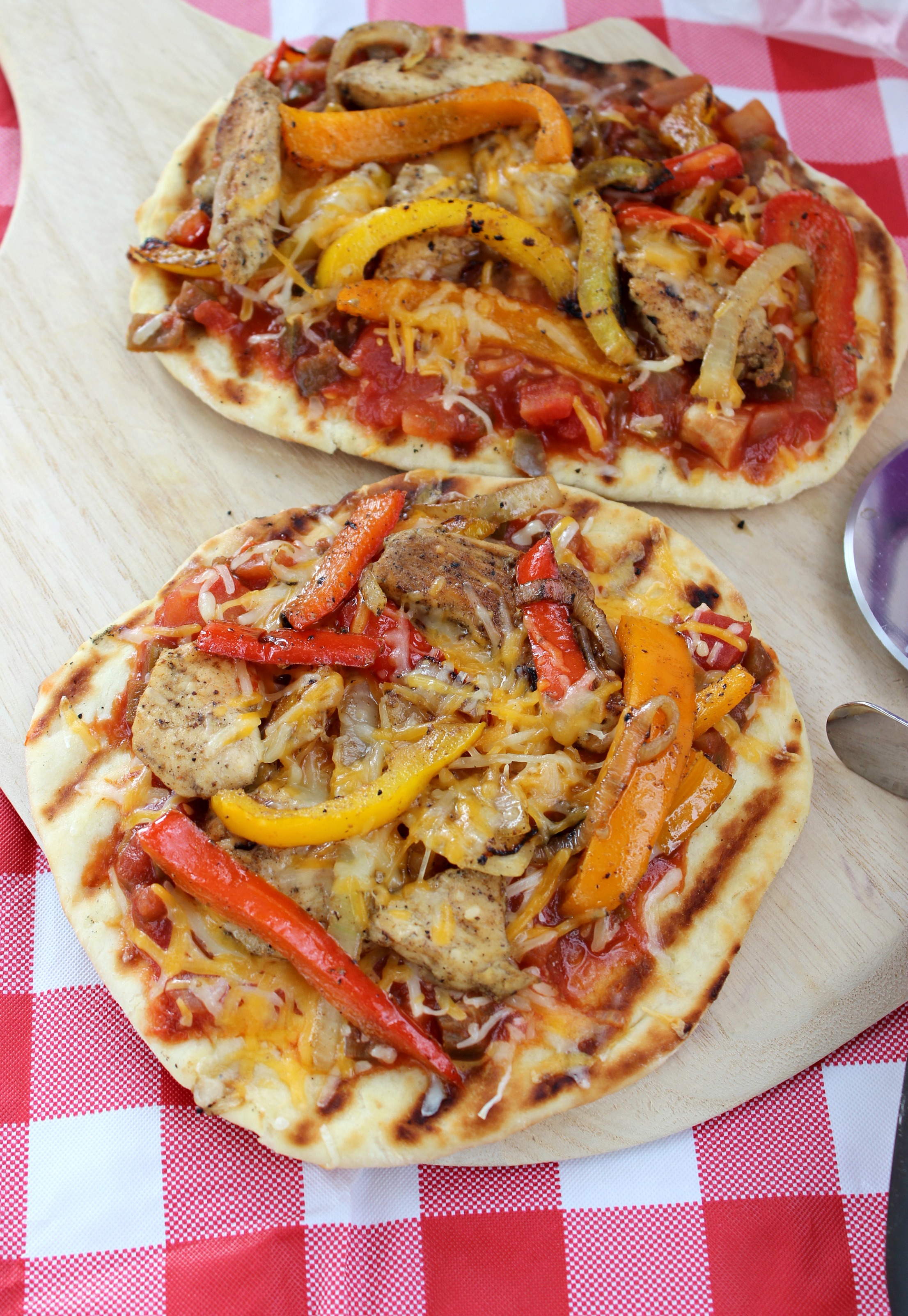 We are crazy for chicken fajitas, so I thought, why not combine the two meal-time favorites and make a one-of-a-kind pizza that no one will forget! I have a feeling these Grilled Chicken Fajita Pizzas will become a favorite at your house too!