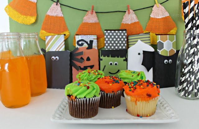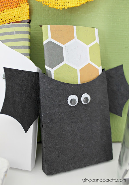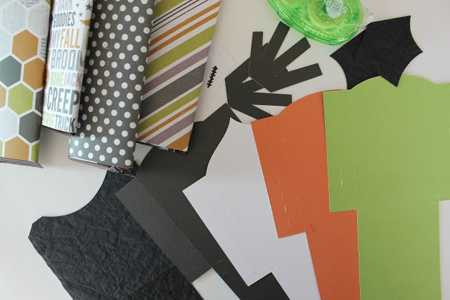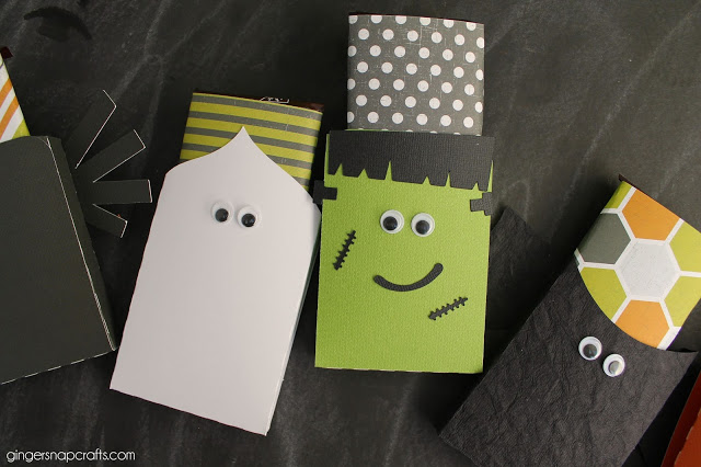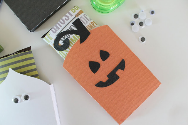 I cut everything out with my Silhouette, & then covered the candy bars with Halloween paper.