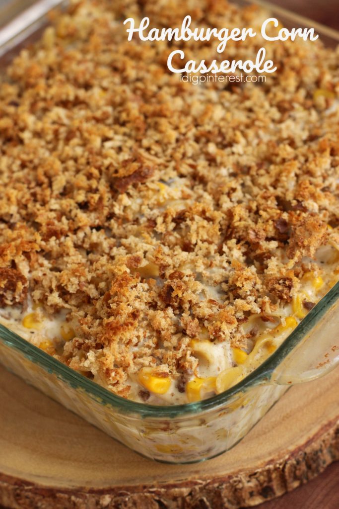 A comforting, hearty casserole filled with creamy noodles, corn and hamburger, topped with crusty, buttery bread crumbs. The family will devour this in a hurry!