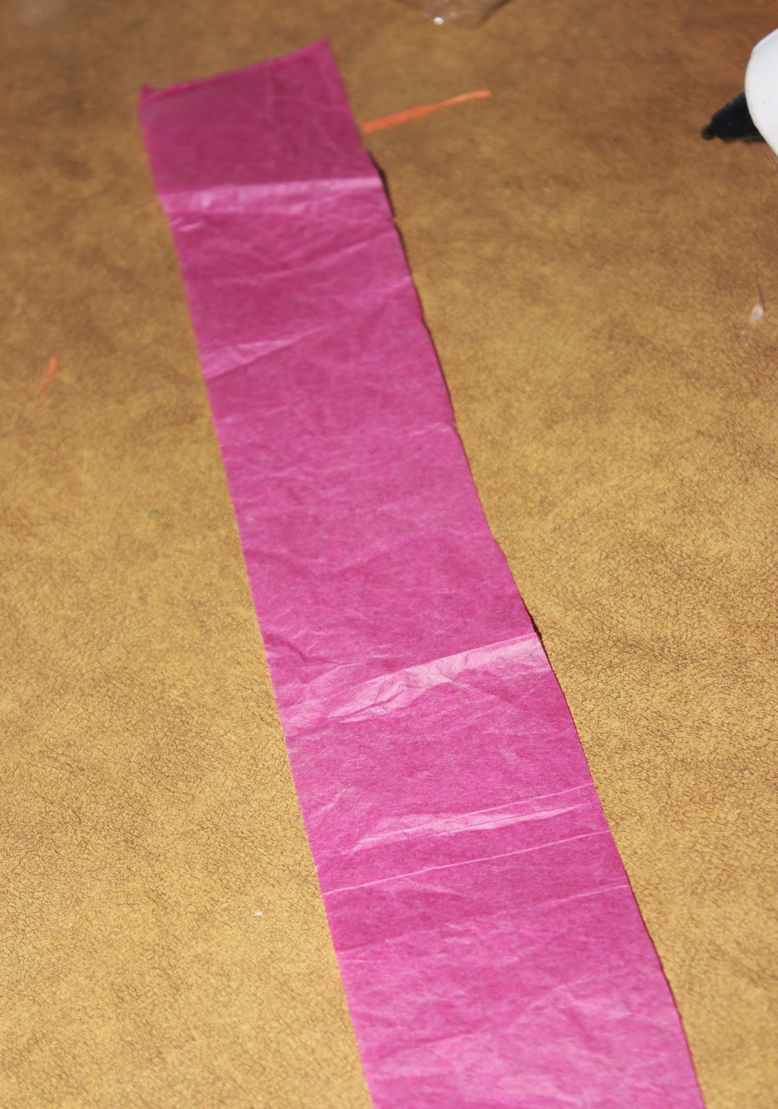 Start by cutting a strip the entire length of your tissue paper. How wide you make it will determine the width of your layers, but I made mine about 1 1/2″.