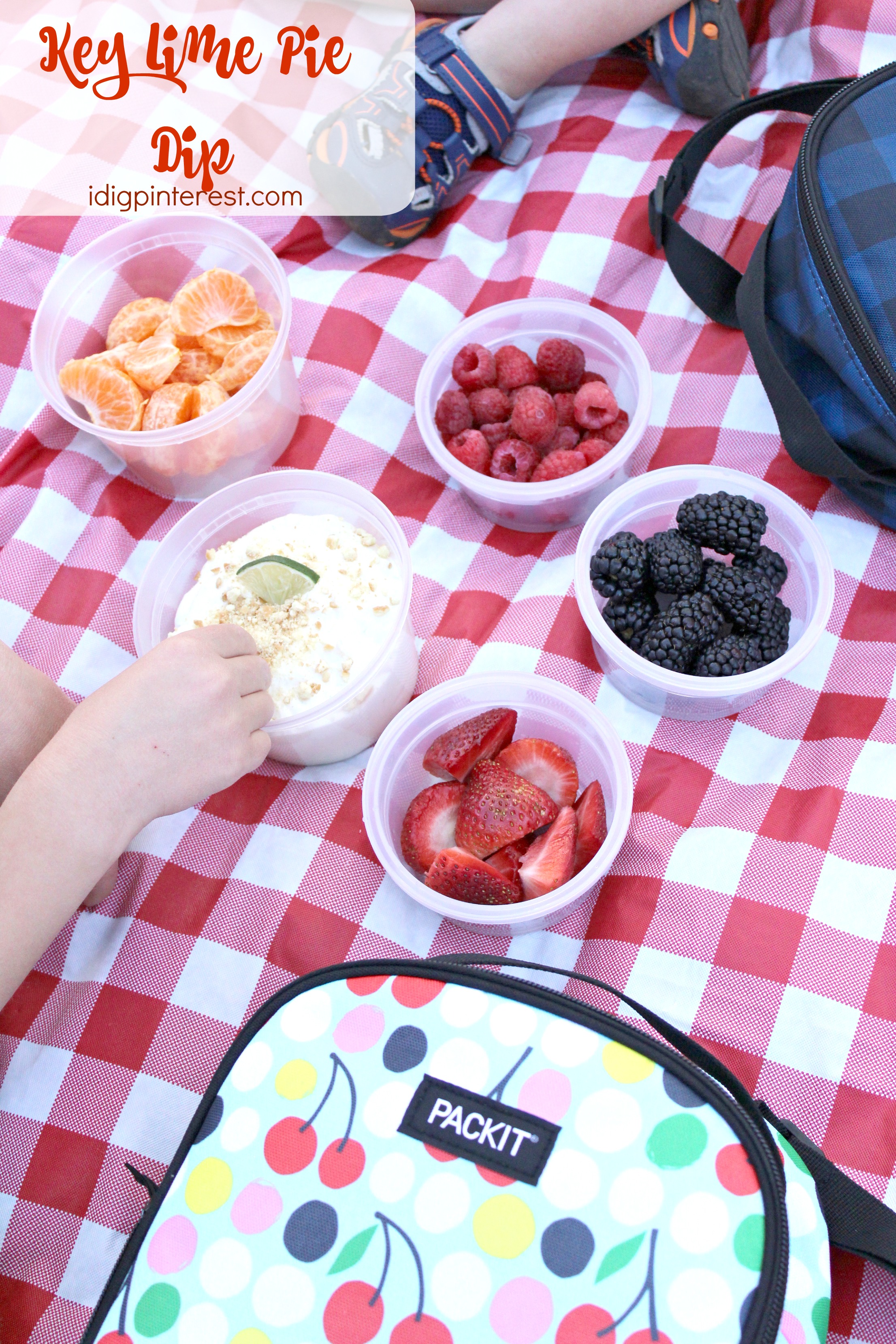 Today’s Key Lime Pie Dip is absolutely dreamy and perfectly paired with fresh fruit like mandarin orange slices, raspberries, blackberries, and strawberries to name a few. All of it stayed cool and amazingly delicious in our PackIt bags!