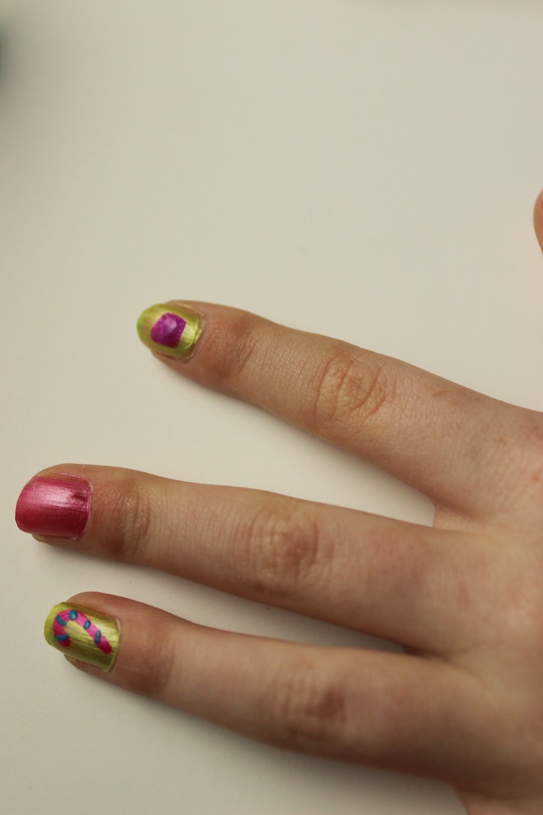 Then I painted a gorgeous vivid pink color on the in-between fingers for an alternating effect.