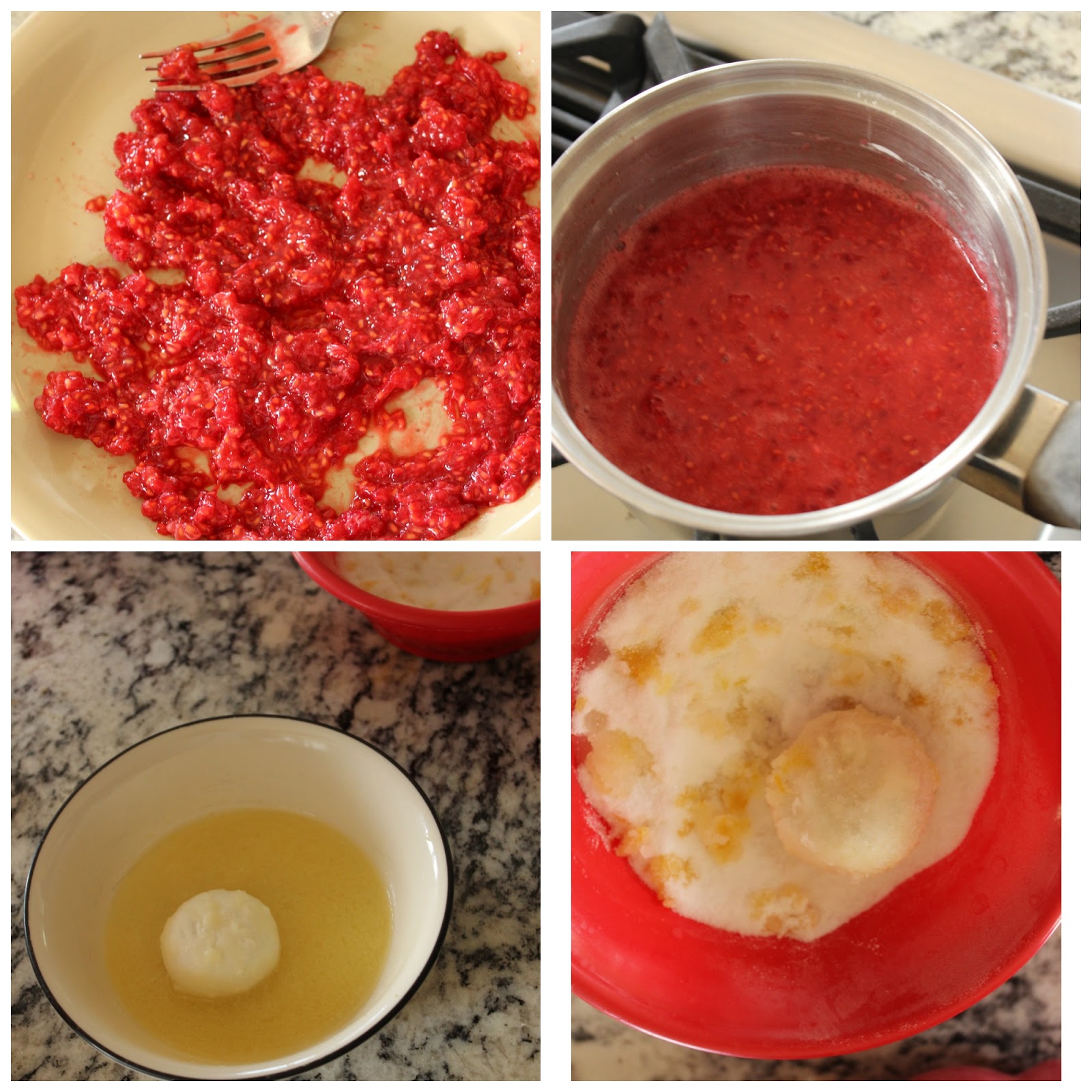 Then you’ll make a phenomenal sauce with mashed raspberries, water, sugar and cornstarch for thickening and boil it over the stove top.