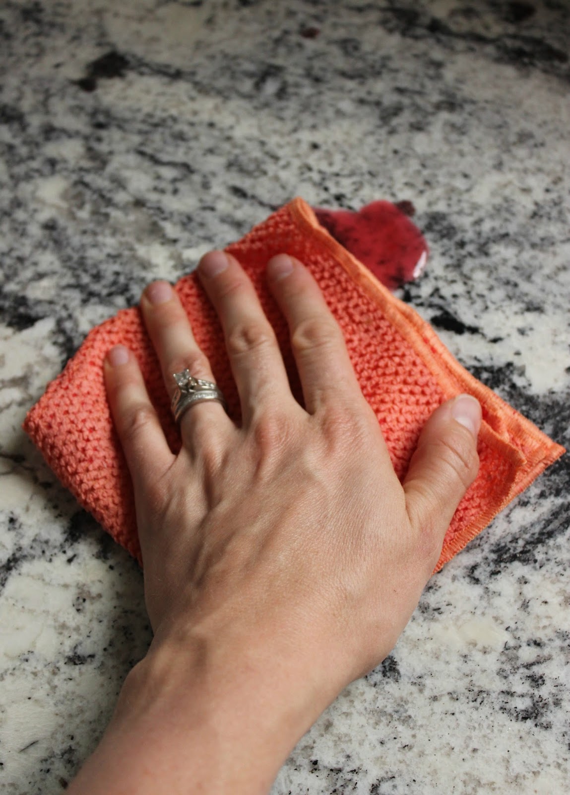 And I’m sort of paranoid about letting spills sit on our new countertops for too long, so I find myself obsessively spot wiping throughout the day in order to prevent stains. Those red raspberry drips had to go!