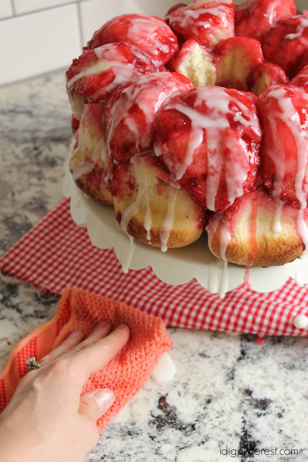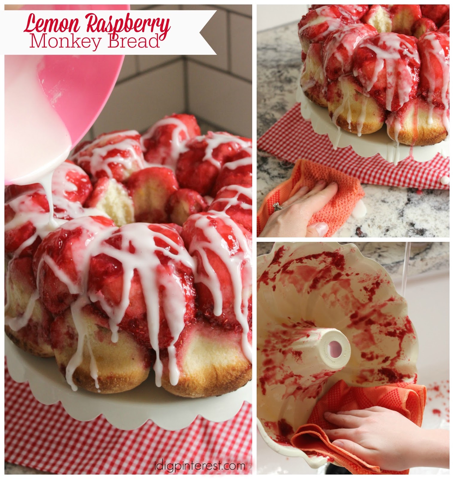 Plus, I don’t have to fret about the aftermath of messy desserts like this Lemon Raspberry Monkey bread! Clean up is no sweat!