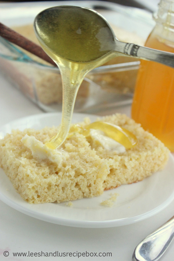 Now that I’ve made this recipe several times with success, I know it’s the one. I love the sour cream (or plain green yogurt – I’ve used both) in this recipe, it really adds something to the bread that is lacking in others I’ve tried, I think it is what gives it is light spongy and moist texture. This recipe is the perfect cornbread in my opinion. It’s all those things I want in cornbread. It’s easy to make, I generally have everything on hand to make it, it’s nice and light and it’s moist. And if you have some butter and honey to top it with – it’s even better!