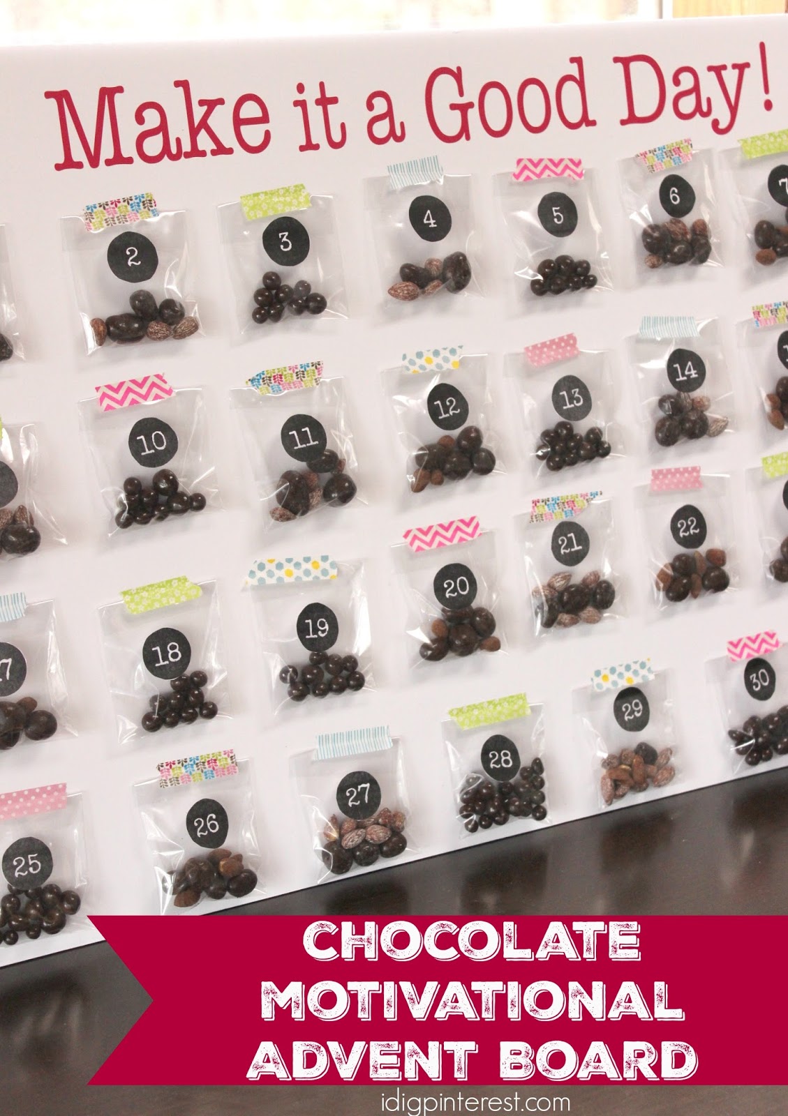 The phrase has become so common around our house and has made such a difference in lifting our moods and improving our outlook, that I wanted to incorporate it into a motivational daily advent board to reward myself, involving chocolate, of course!