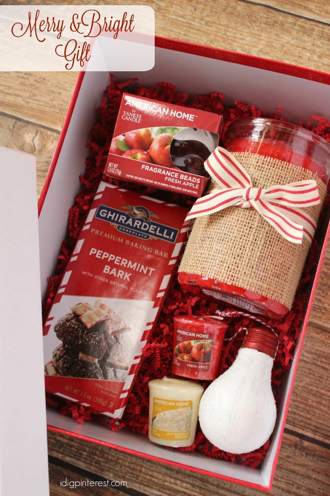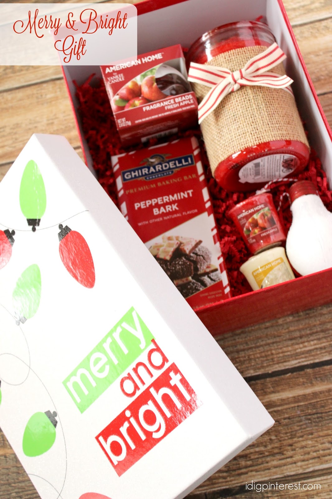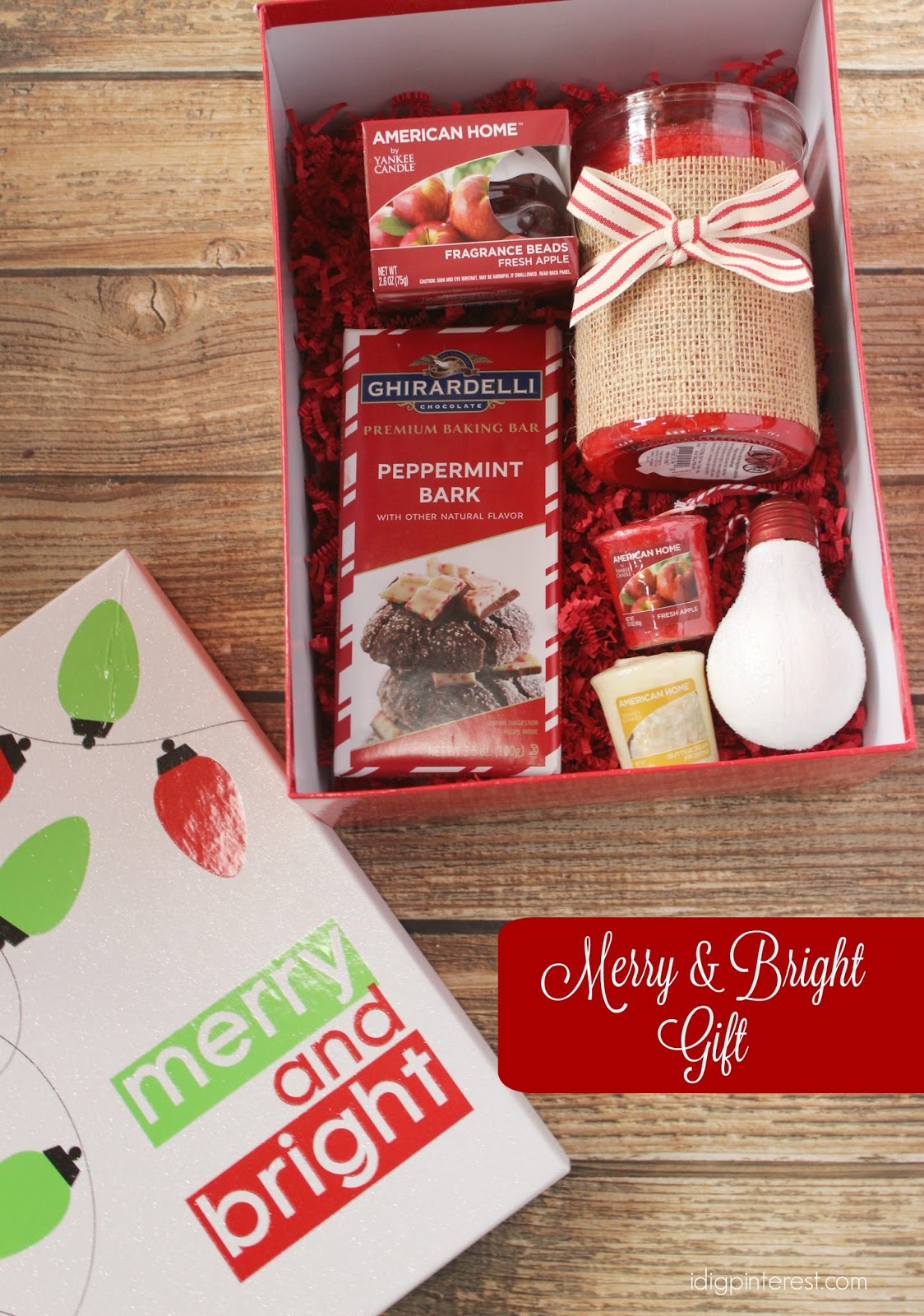 Then, to put the gift all together, I filled a “Merry and Bright” gift box that I found at Walmart with red paper shreds, added my items on top, and it’s ready for gifting! I can’t wait to attend my first holiday party and share this with my hostess friend!What are your favorite American Home™ by Yankee Candle® brand fragrances and what are your best ideas for using them in a holiday gift? I’d love to hear in the comments section below!