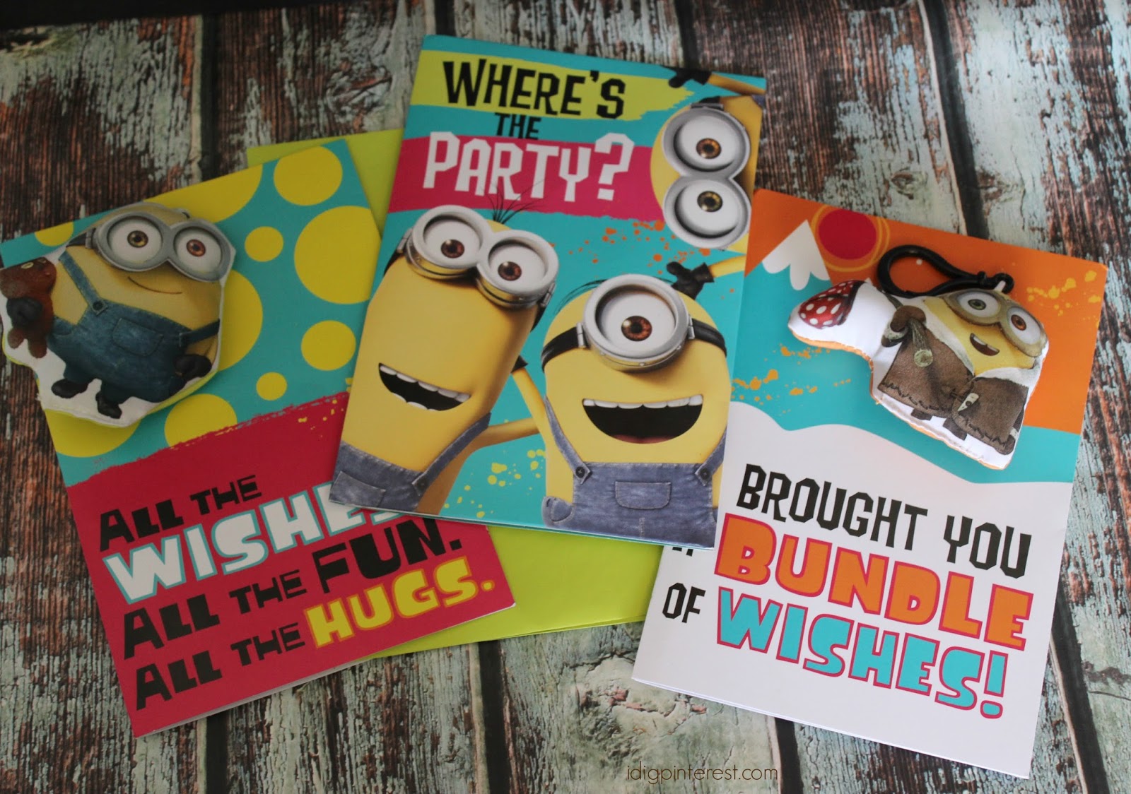 I took the kids to Walmart and let them pick out some Hallmark birthday cards featuring the adorable little yellow guys in goggles.