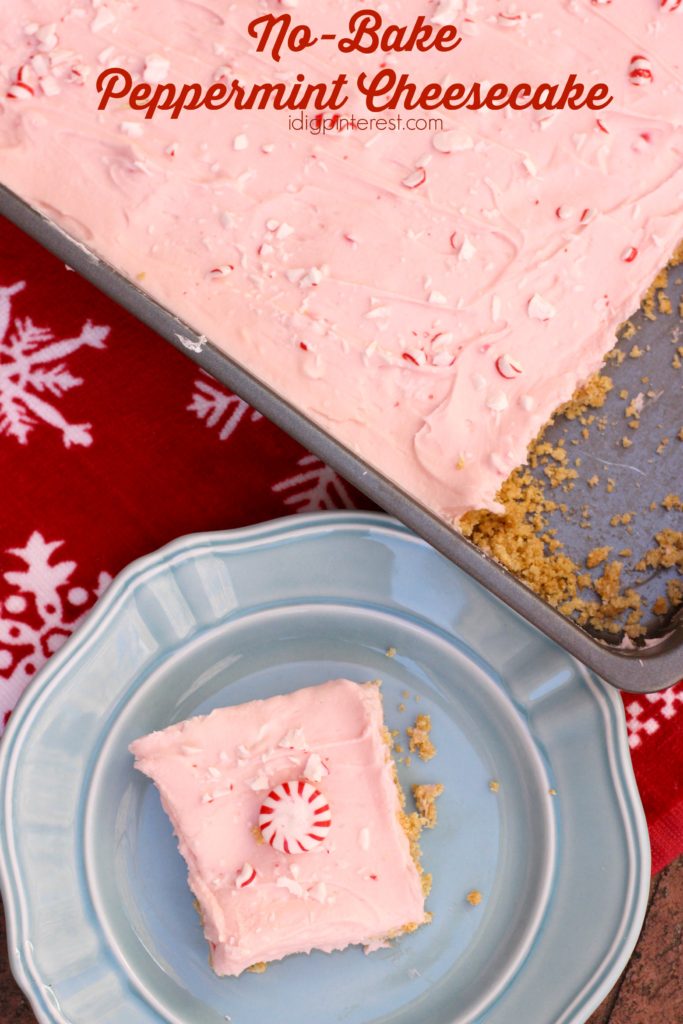 And now that we’ve made sure our guests will be feeling well, let’s talk about how to impress them with this yummy Peppermint Cheesecake confection! It includes a graham cracker crust, peppermint cream cheese filling, and is topped with crunchy peppermint pieces! It’s a festive color, too, so it’s perfect for sharing with holiday guests and at fun gatherings.
