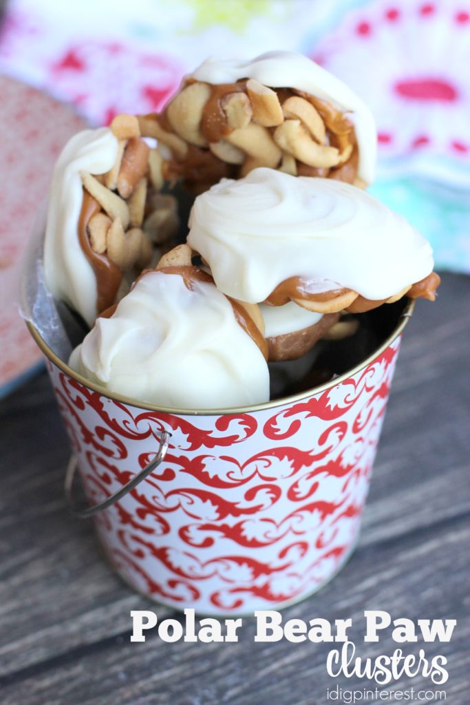 White chocolate, cashews, pretzels and soft caramel combine to make the most delicious clustered treat! The holidays just wouldn’t be complete without this See’s copycat polar bear paw dessert!