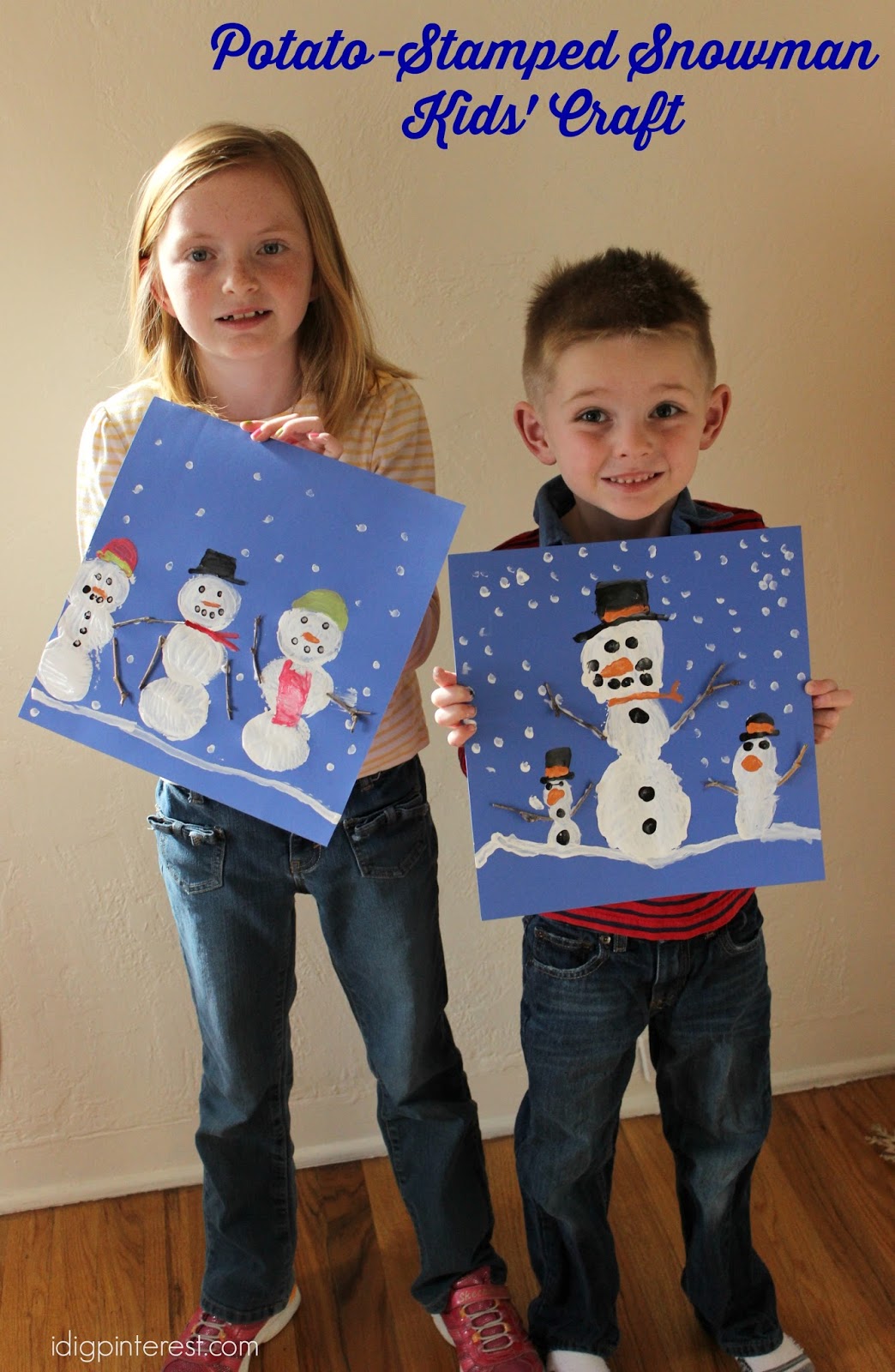 If you’re stuck inside with the kids because of winter weather conditions, keep busy creating a fun snowman craft, using potatoes as stamps!