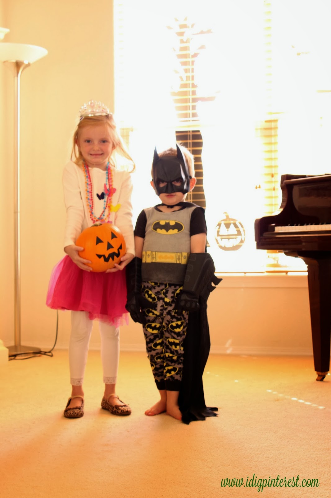 Now simply draw three circles for the ghost face, make your pumpkin face if you’d like, stack the ghost “pins”, and the kids are good to go!
