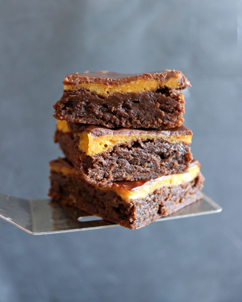 So I used that recipe as a base for today’s fall brownie variation and then added a yummy little pumpkin cream cheese layer with a ribbon of chocolate ganache on top to finish it all off. It’s an experience the taste buds won’t soon forget!