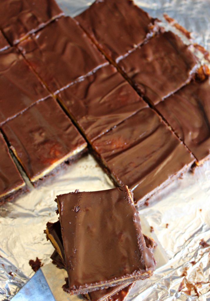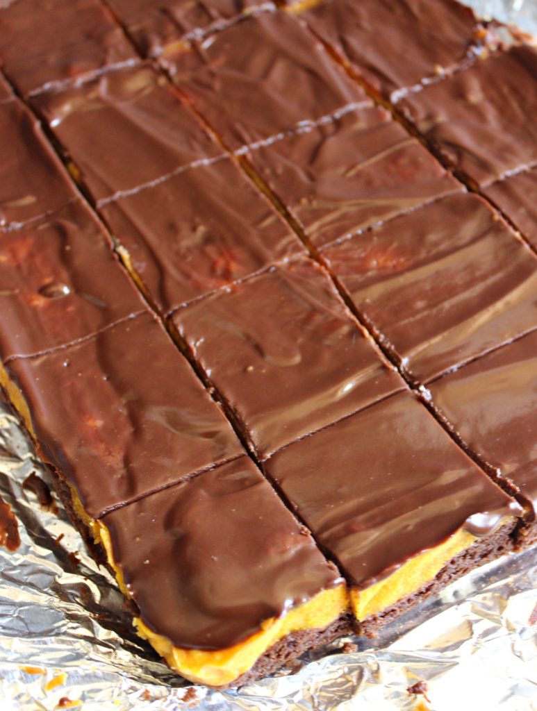 - For the ganache, melt butter with the chocolate chips in the microwave in 30 second increments, stirring in between. Whisk in milk until smooth. Pour and spread over brownies. Place in the refrigerator so the chocolate can set.