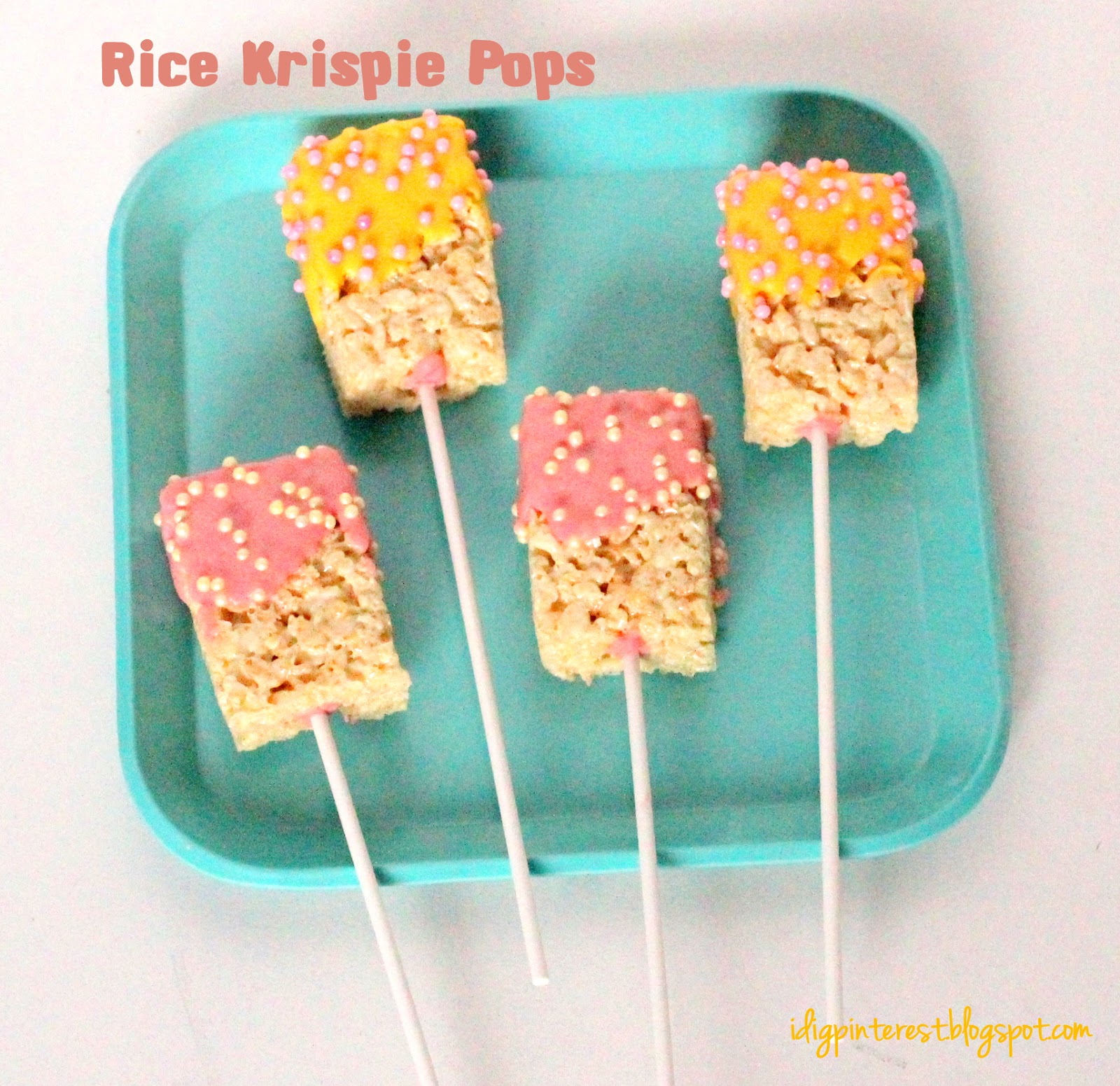 Grab your Rice Krispie squares and your sucker sticks. Dip the very top end of the sticks in the melted candy and immediately insert into your Rice Krispie square. This ensures a good bond between sucker and stick.
