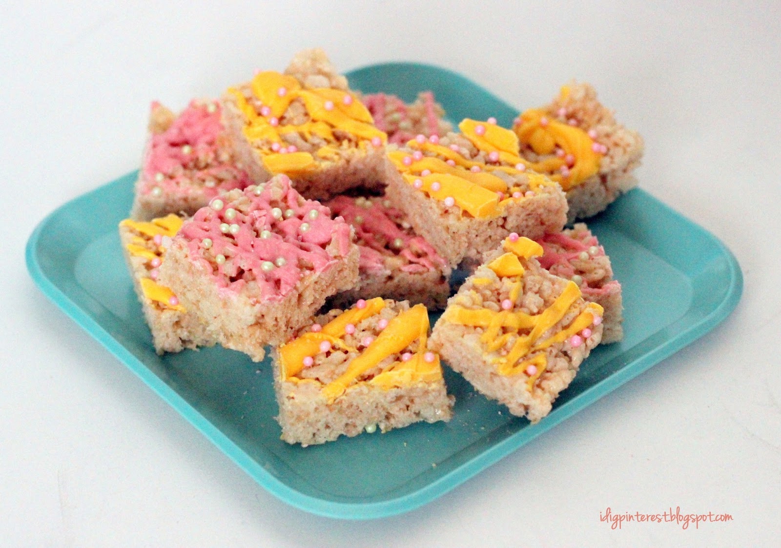 There are so many ways to dress up a plain Rice Krispie Square! These are a few that I came up with this the other morning on a whim when I needed a fun treat to bring to our playgroup Easter Egg Hunt.
