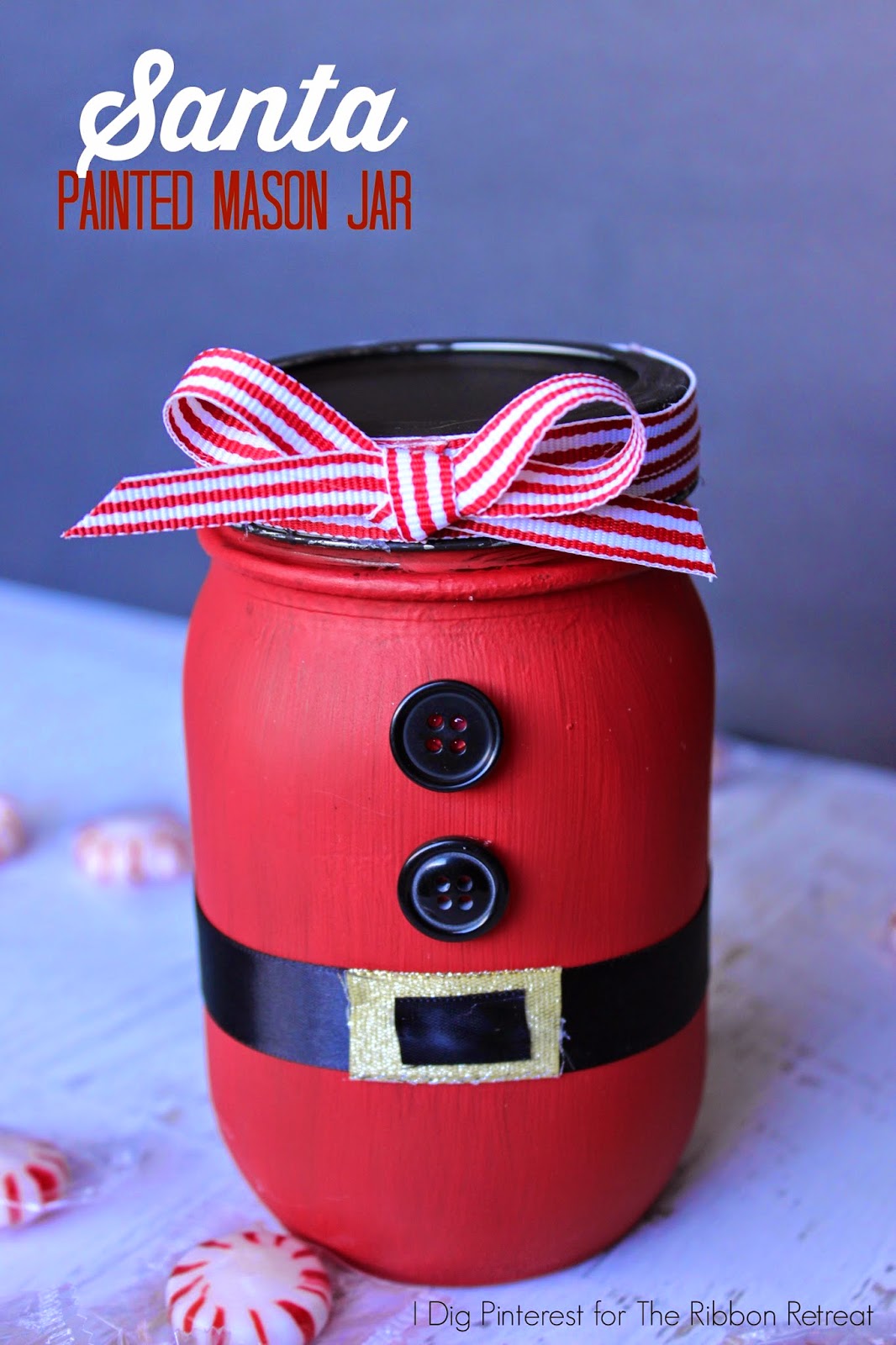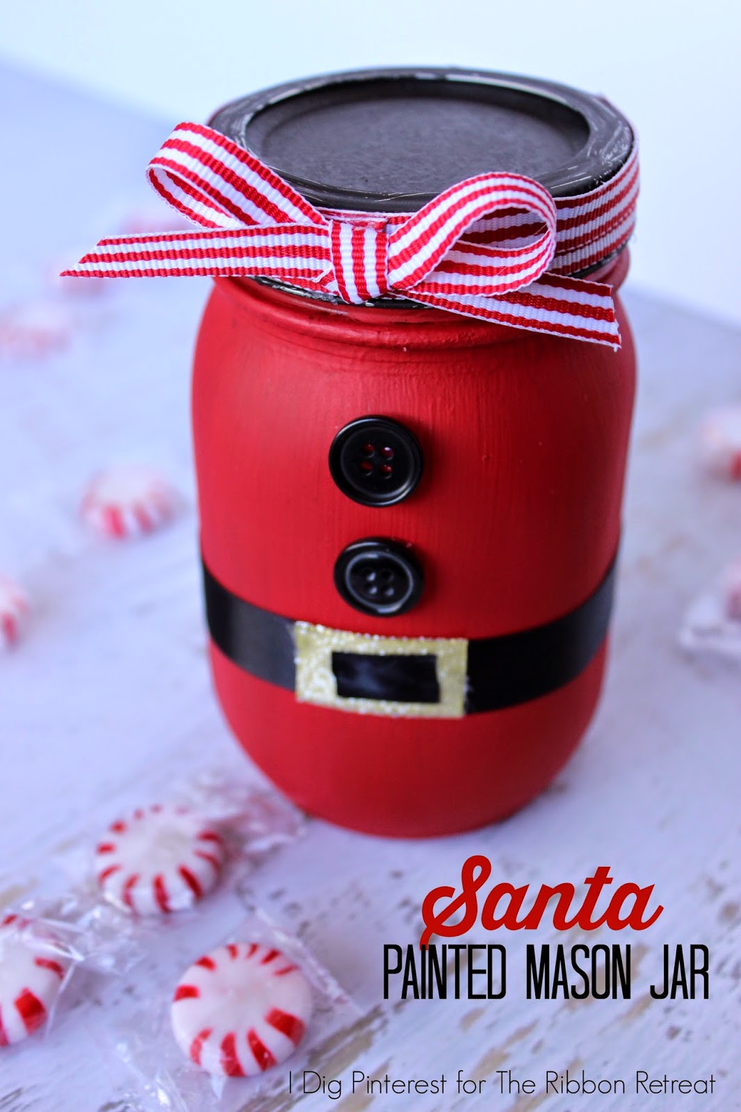 So I wanted to create a replica of what Santa represents…joy, magic, wonder, and love…in this Painted Mason Jar Gift! They are so simple to make! You could totally mass produce these for everyone on your gift list. They’re sure to be well received!