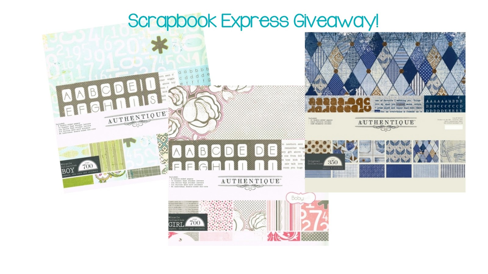 So here’s the good stuff…Scrapbook Express is going to give THREE lucky people one of these cute Authentique Collection Kits (one Miracle Boy, one Miracle Girl, and one Original)!
