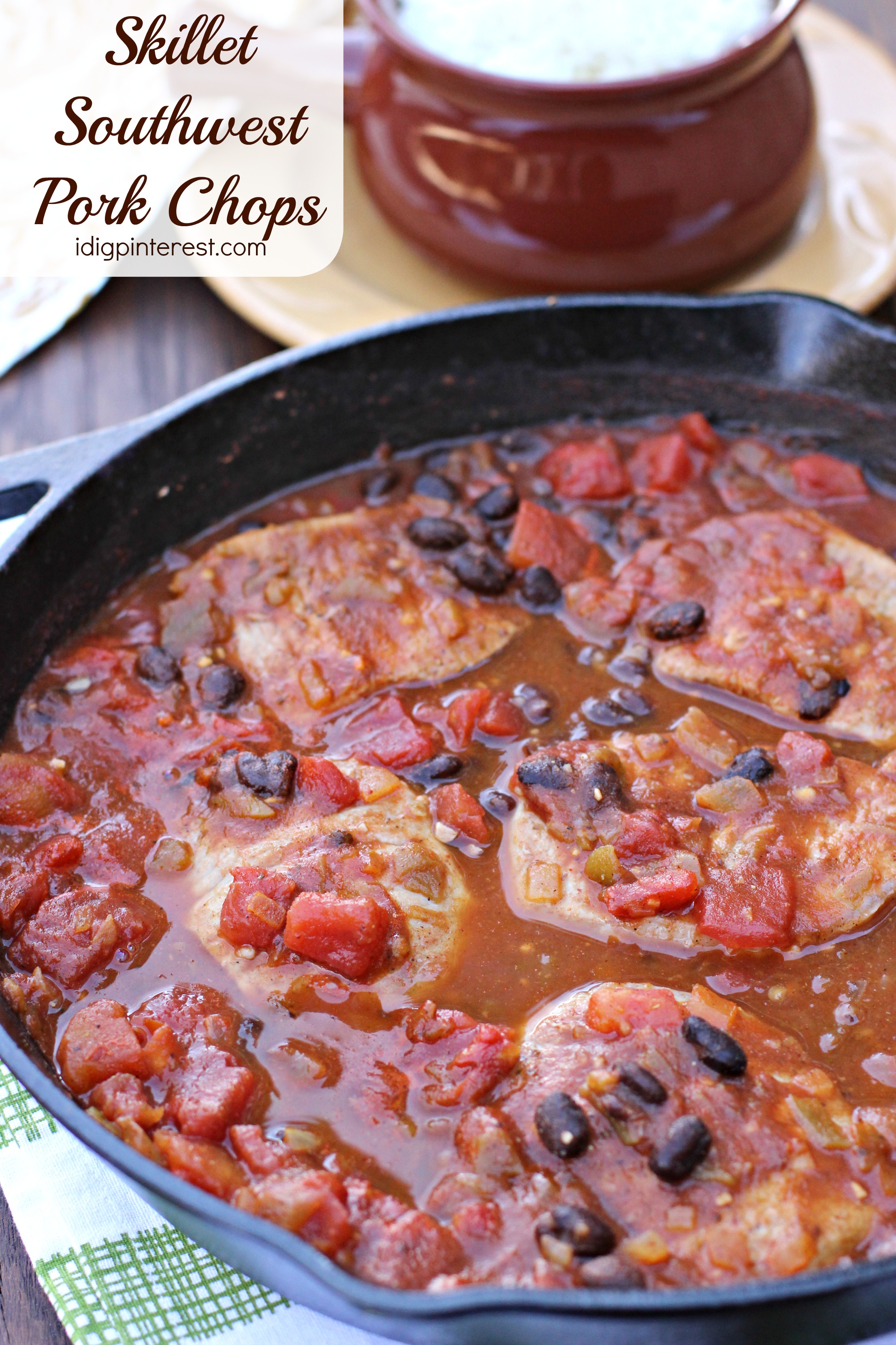 Dinner in under 30 minutes never looked so good as these Skillet Southwest Pork Chops! The whole family will be full and happy afterwards!