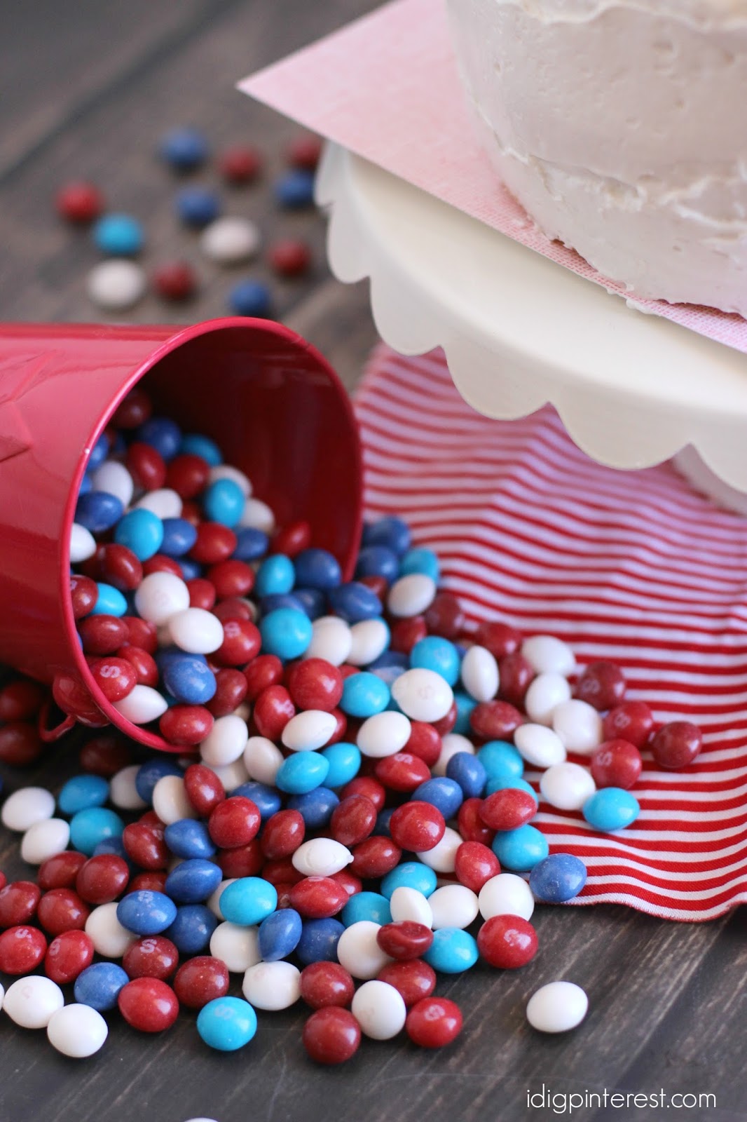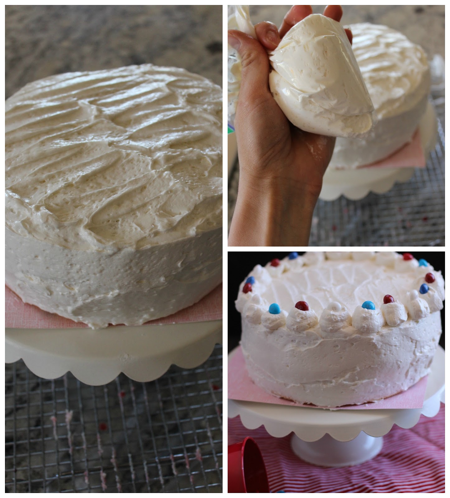 I can’t get over how fun those red and blue stripes are with the contrast of the white cake and bright white icing! It’s almost too pretty to eat…almost. 🙂