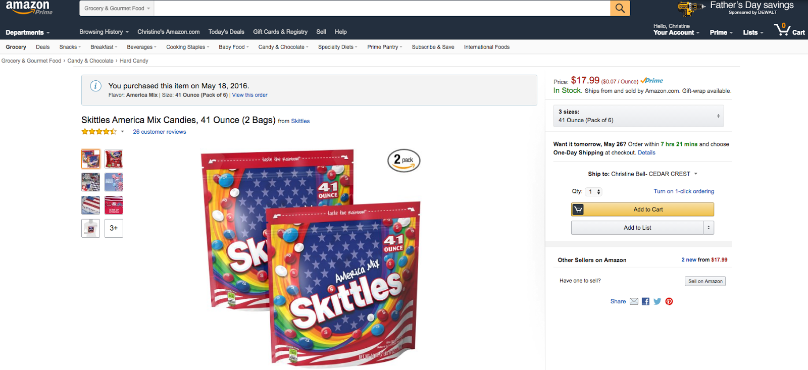 But when I decide I need something, like this limited edition Skittles America Mix, I don’t want to wait ages to receive it and get my delicious project underway (love the super quick Prime shipping, don’t you?!).