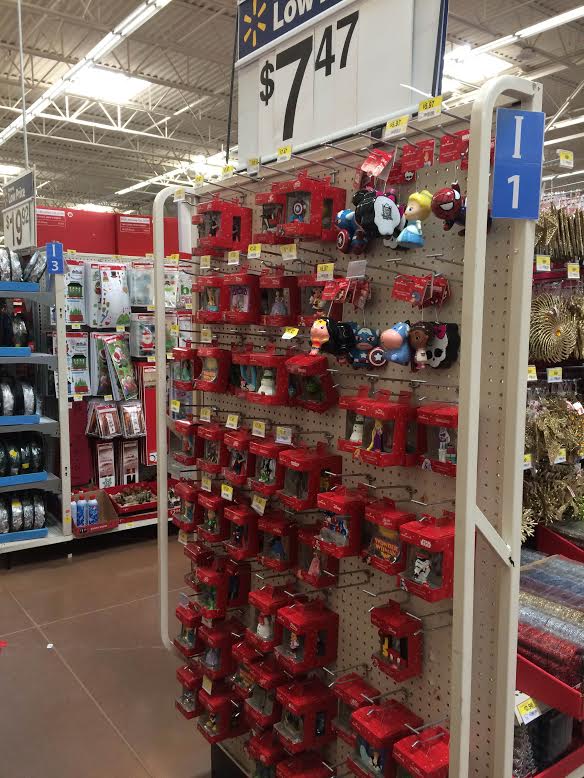 I found a great selection of Hallmark ornaments on an aisle end cap in the seasonal section at Walmart.